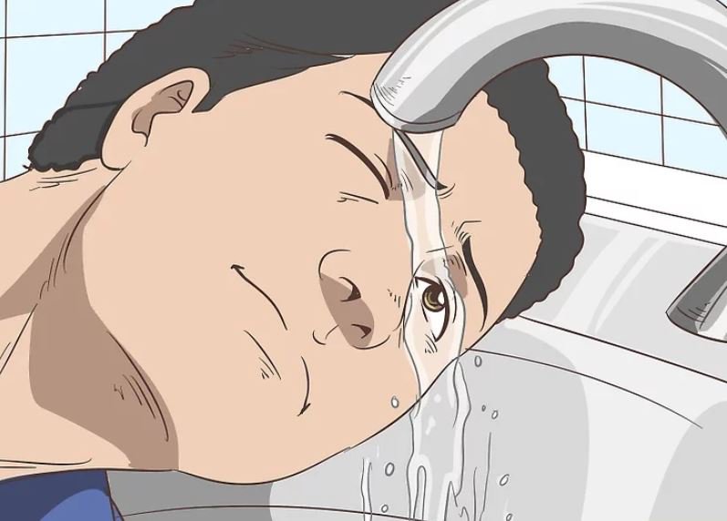 + Nếu khi nhắm mắt lại mà bị đau, nhẹ nhàng kéo mí mắt mở ra để rửa. Không để nước nhiễm bẩn chảy sang mắt kia.