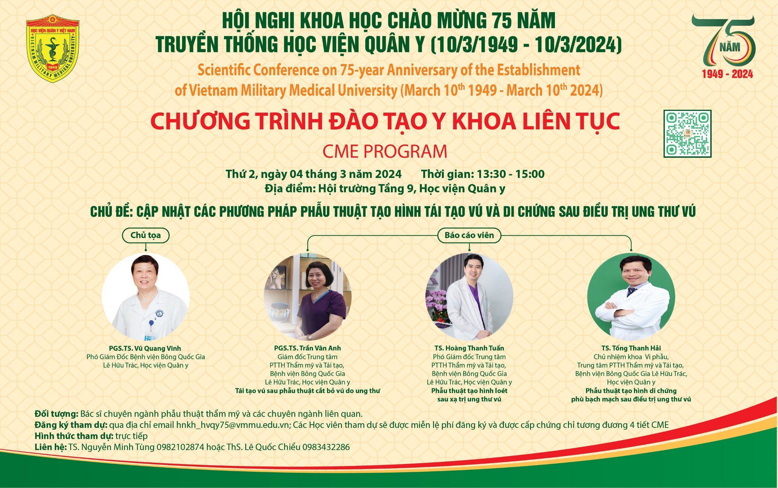 Học viện Quân y trân trọng kính mời các cán bộ, các nhà khoa học, các bác sĩ, các nhà nghiên cứu khoa học đăng ký tham dự qua email: hnkh_hvqy75@vmmu.edu.vn (hoặc qoét mã QR trên giấy mời).