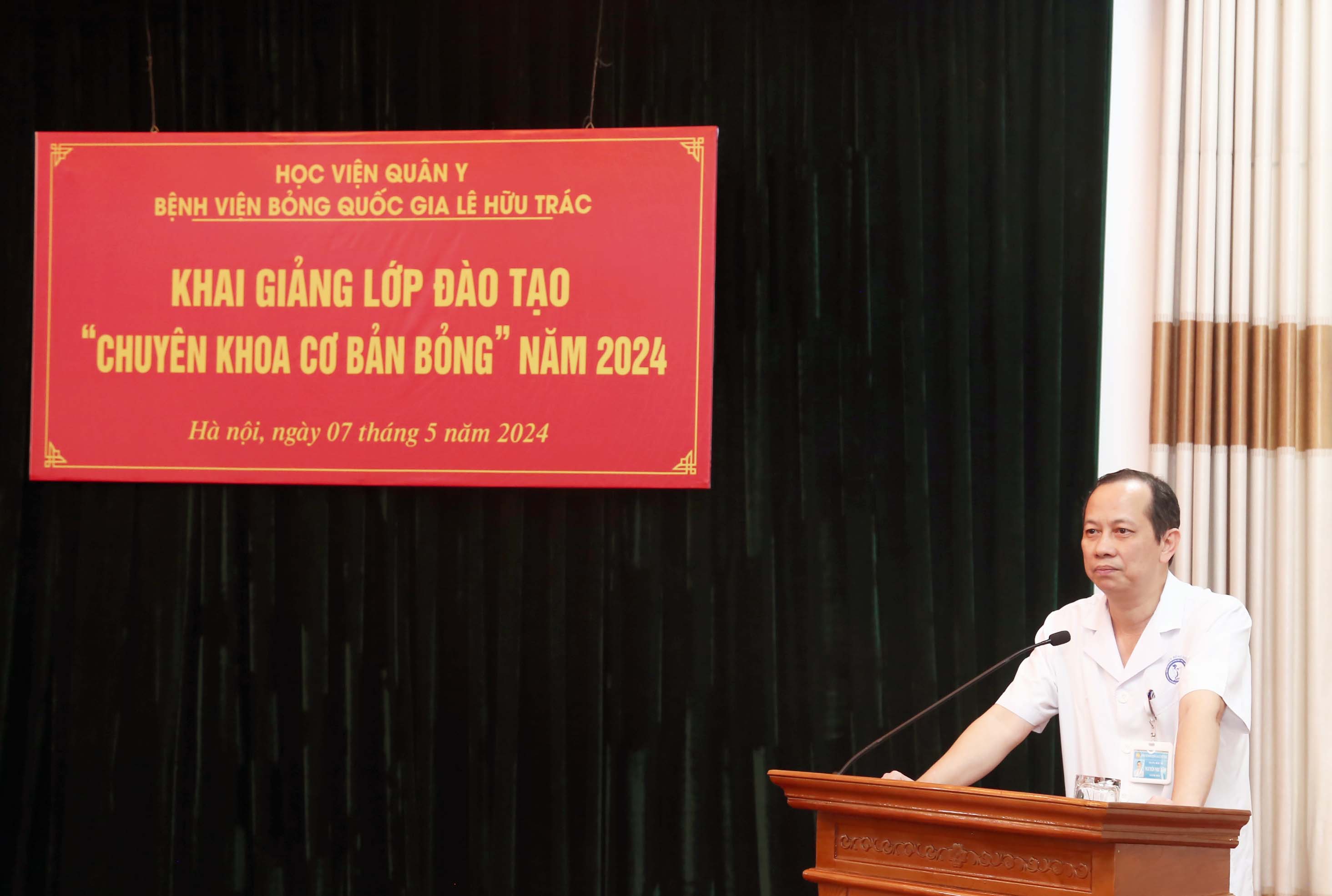 Phát biểu và chỉ đạo buổi Khai giảng, GS.TS. Nguyễn Như Lâm, Giám đốc Bệnh viện mong muốn đào tạo cho các bác sĩ mới về và bác sĩ ở tuyến dưới nhằm giúp nâng cao kiến thức và thực hành cơ bản, bổ sung nguồn nhân lực chất lượng cho chuyên ngành Bỏng ở Bệnh viện và tuyến dưới. Đồng thời mong muốn các bạn học viên đặt ra mục tiêu cụ thể và xác định tư tưởng với quyết tâm cao; tham gia học tập thật nhiệt tình, thực hiện tốt quy chế chuyên môn, nội quy học tập, hoàn thành chương trình học tập đúng tiến độ và yêu cầu đề ra.
