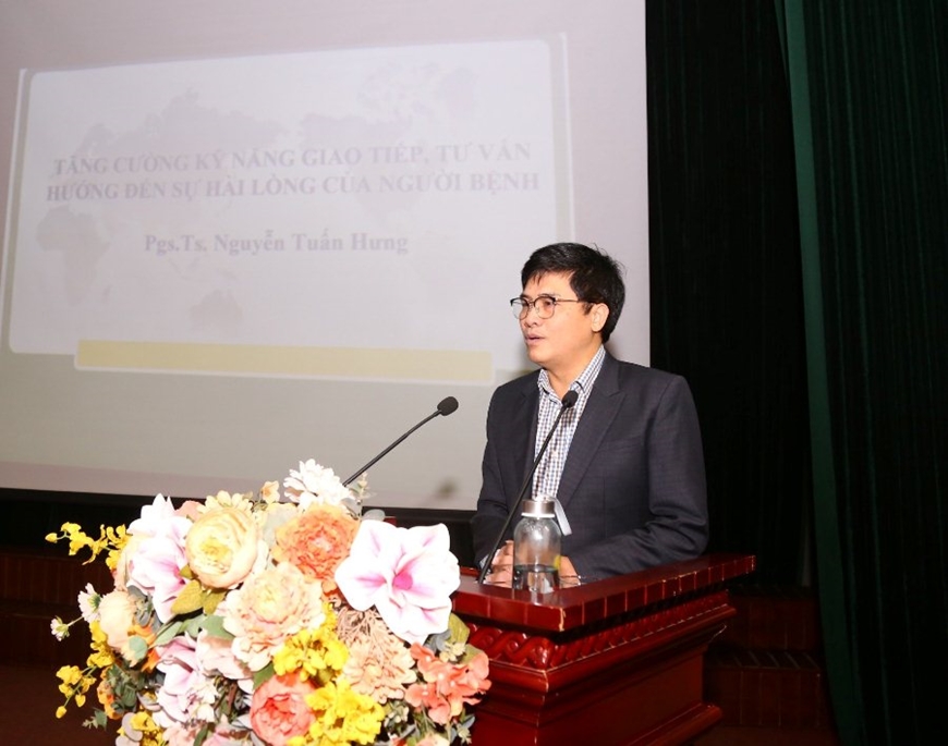 Buổi tập huấn đã diễn ra trong không khí cởi mở và thảo luận sôi nổi giữa cán bộ, nhân viên y tế bệnh viện với PGS. TS. Nguyễn Tuấn Hưng với nhiều tình huống thực tế đã xẩy ra được đưa ra để cùng nhau phân tích, rút kinh nghiệm đồng thời thực hành giao tiếp, ứng xử; thực hành kỹ năng đón tiếp người bệnh tại từng bộ phận của bệnh viện. Đặc biệt là các kỹ năng quản lý cảm xúc, rèn luyện tư duy tích cực trong giao tiếp, ứng xử với đồng nghiệp, với người bệnh và gia đình người bệnh, kinh nghiệm trong xử lý các tình huống phát sinh trong môi trường bệnh viện.