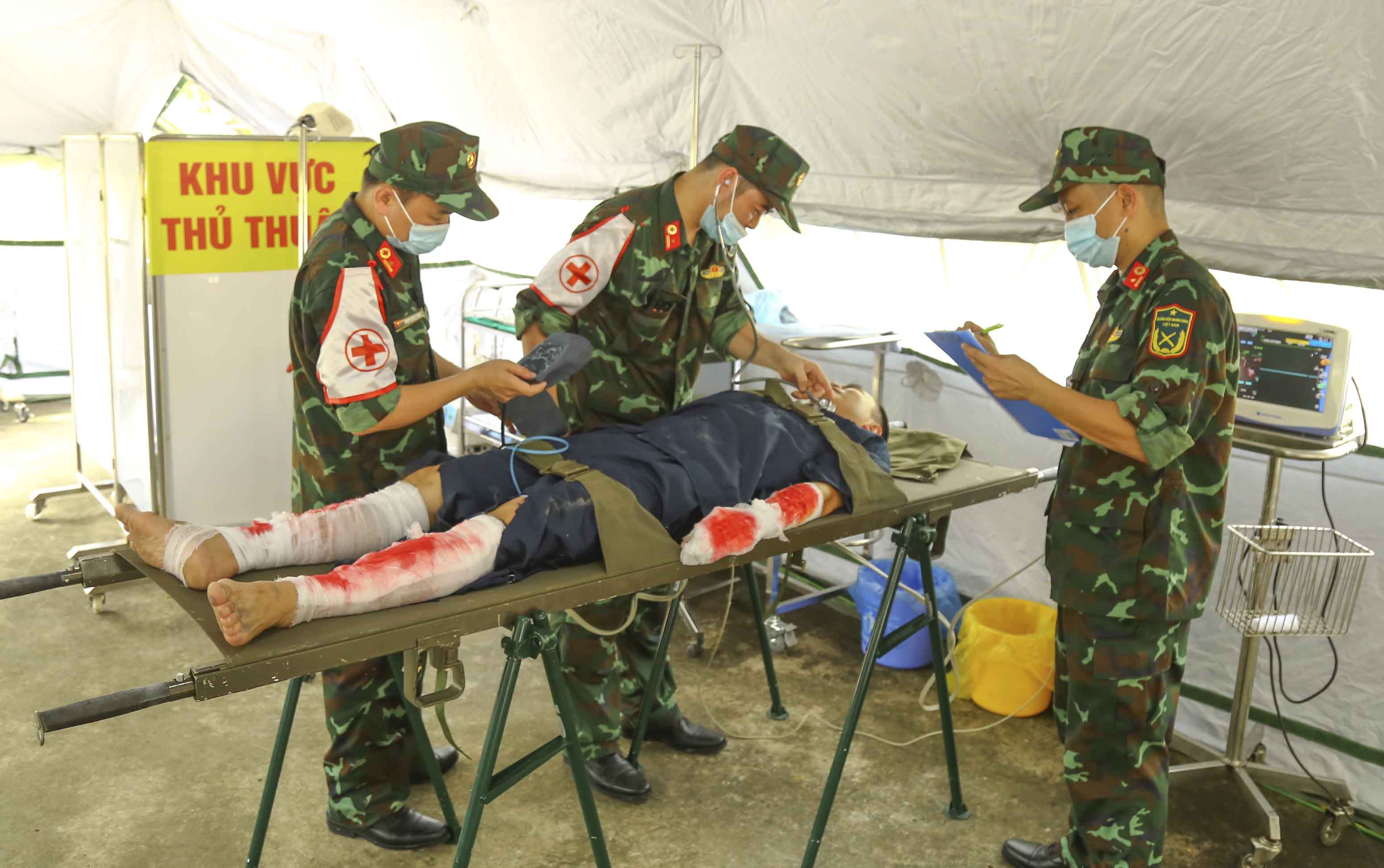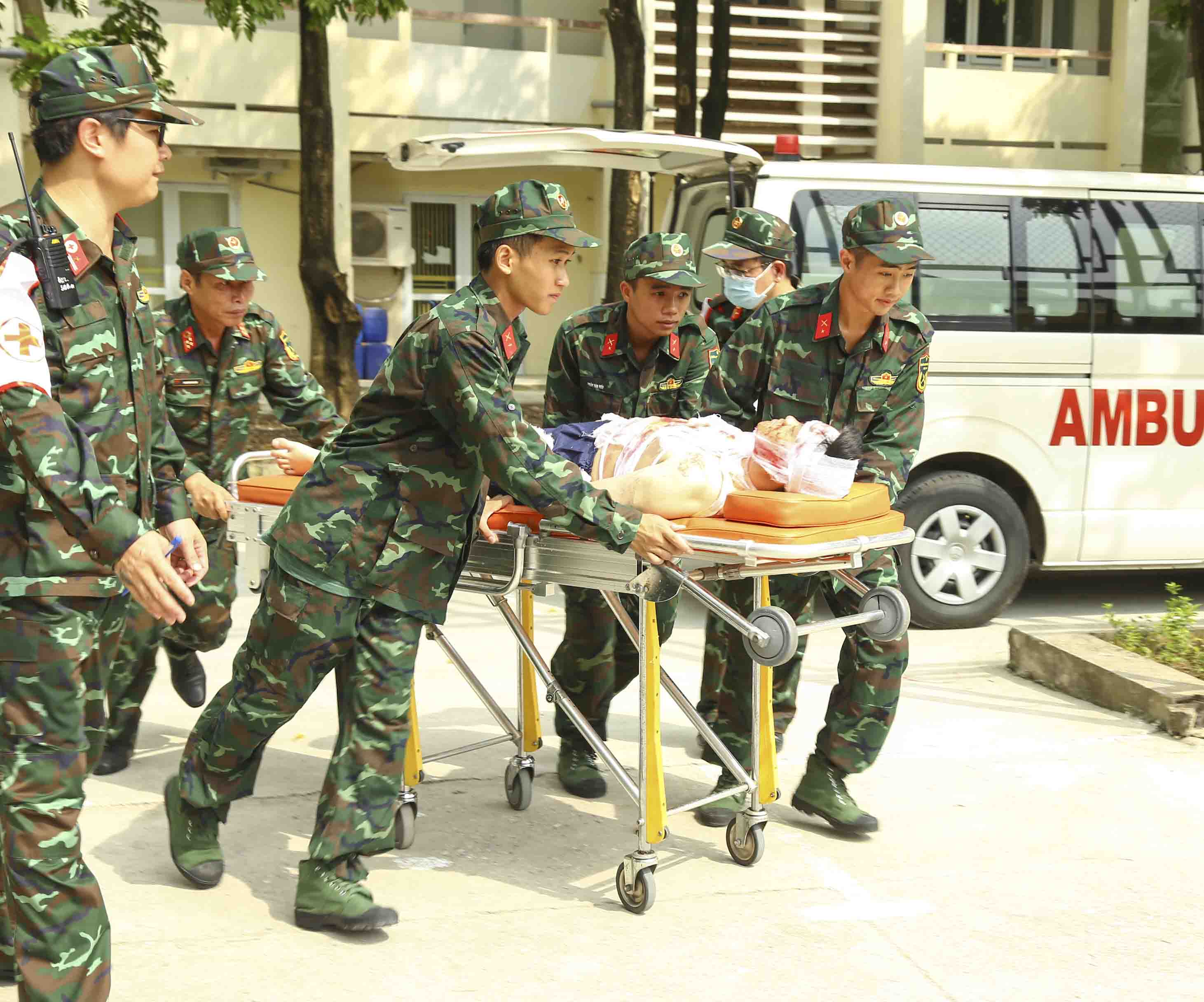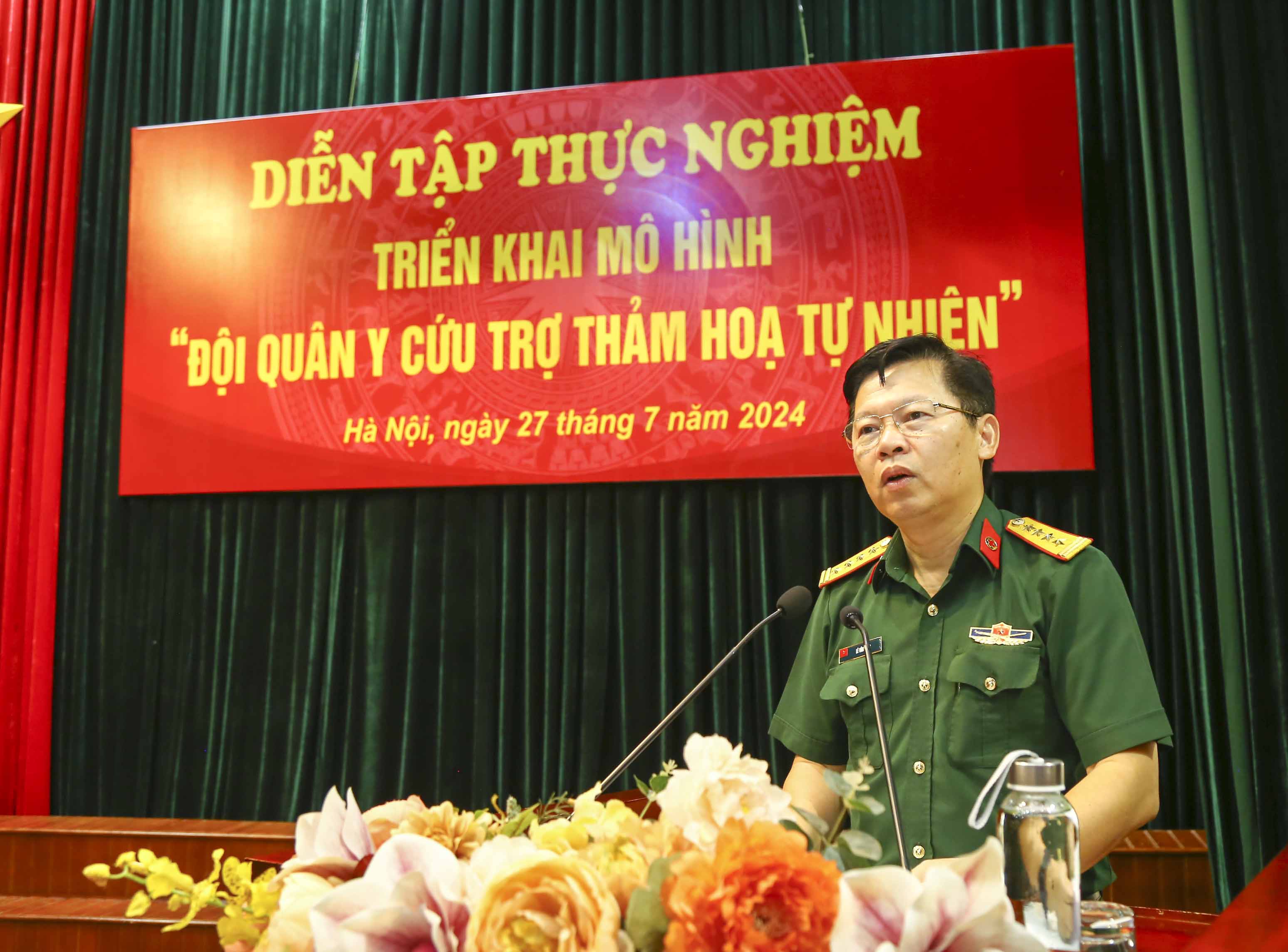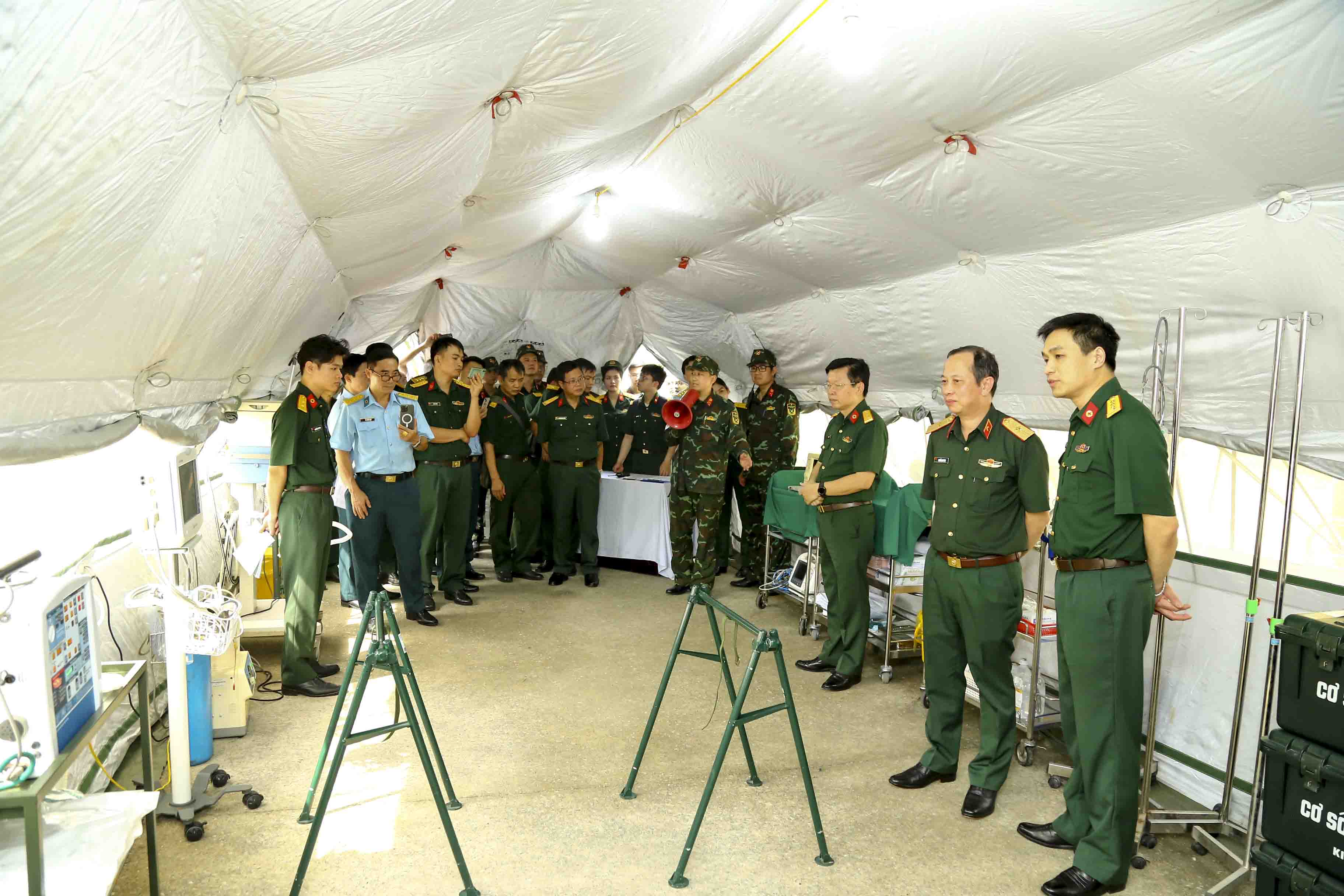 Phát biểu chỉ đạo buổi diễn tập Đại tá, PGS.TS. Lê Văn Đông, Phó Cục trưởng Cục Quân y nhấn mạnh rằng tổ chức diễn tập nhằm đánh giá các phương án xử lý tình huống và công tác phối hợp hiệp đồng của Đội Quân y cứu trợ thảm họa tự nhiên trong sử dụng lực lượng, phương tiện, trang bị tham gia cấp cứu, thu dung, điều trị, chuyển tuyến; làm cơ sở cho việc điều chỉnh, bổ sung về lý luận cho phù hợp thực tế. Đồng thời các đồng chí Ban tổ chức, các giảng viên tích cực nghiên cứu chương trình huấn luyện, kết hợp giữa học hỏi, trao dồi kinh nghiệm với các đơn vị khác và quốc tế để mang kiến thức, kinh nghiệm của mình tổ chức, tham gia huấn luyện cán bộ, nhân viên quân y tại các cơ sở khác.