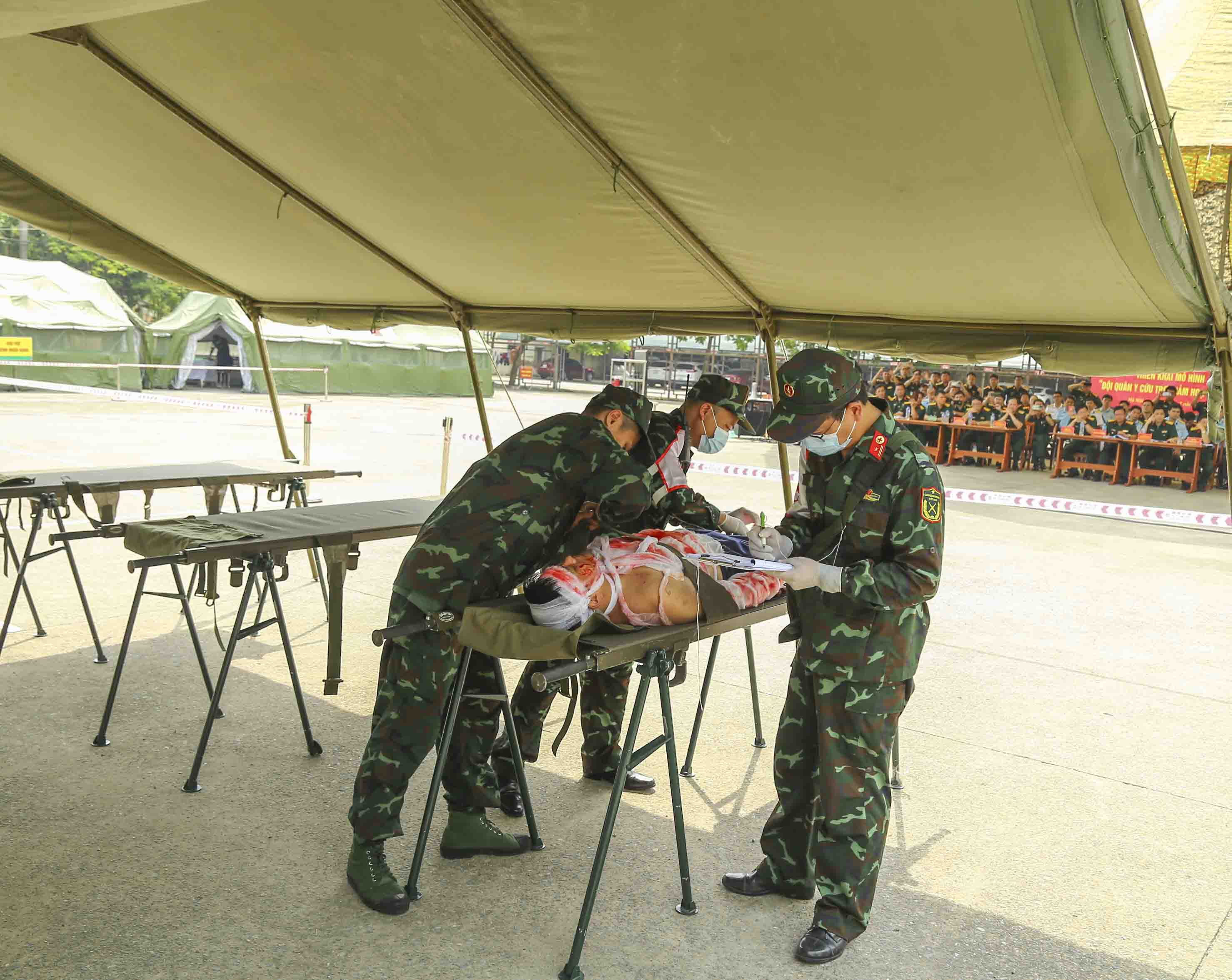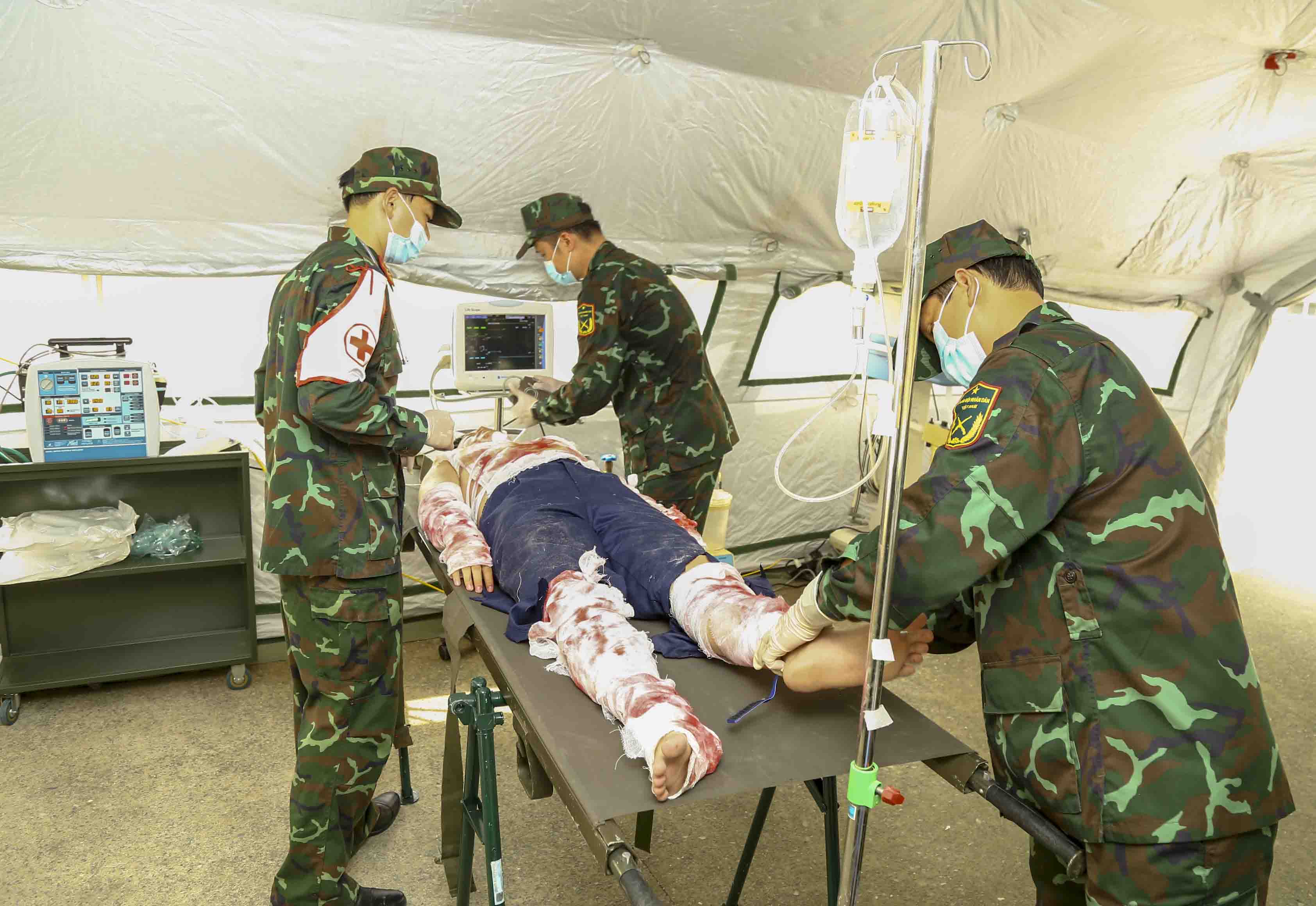 Ngay sau buổi khai mạc, Đội mẫu Đội quân y cứu trợ thảm hoạ tiến hành diễn tập tình huống giả định với các nội dung về thảm họa và tổ chức đáp ứng y tế trong thảm họa; tổ chức đội Quân y cấp cứu thảm họa; thực hành triển khai các bộ phận của tổ Quân y cấp cứu thảm họa; thực hành phân loại, cấp cứu, điều trị bước đầu và vận chuyển nạn nhân tổn thương hàng loạt.