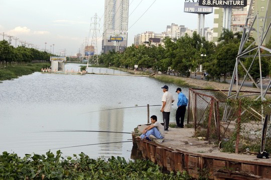 Người dân bất chấp nguy hiểm ngồi câu cá dưới đường điện cao thế