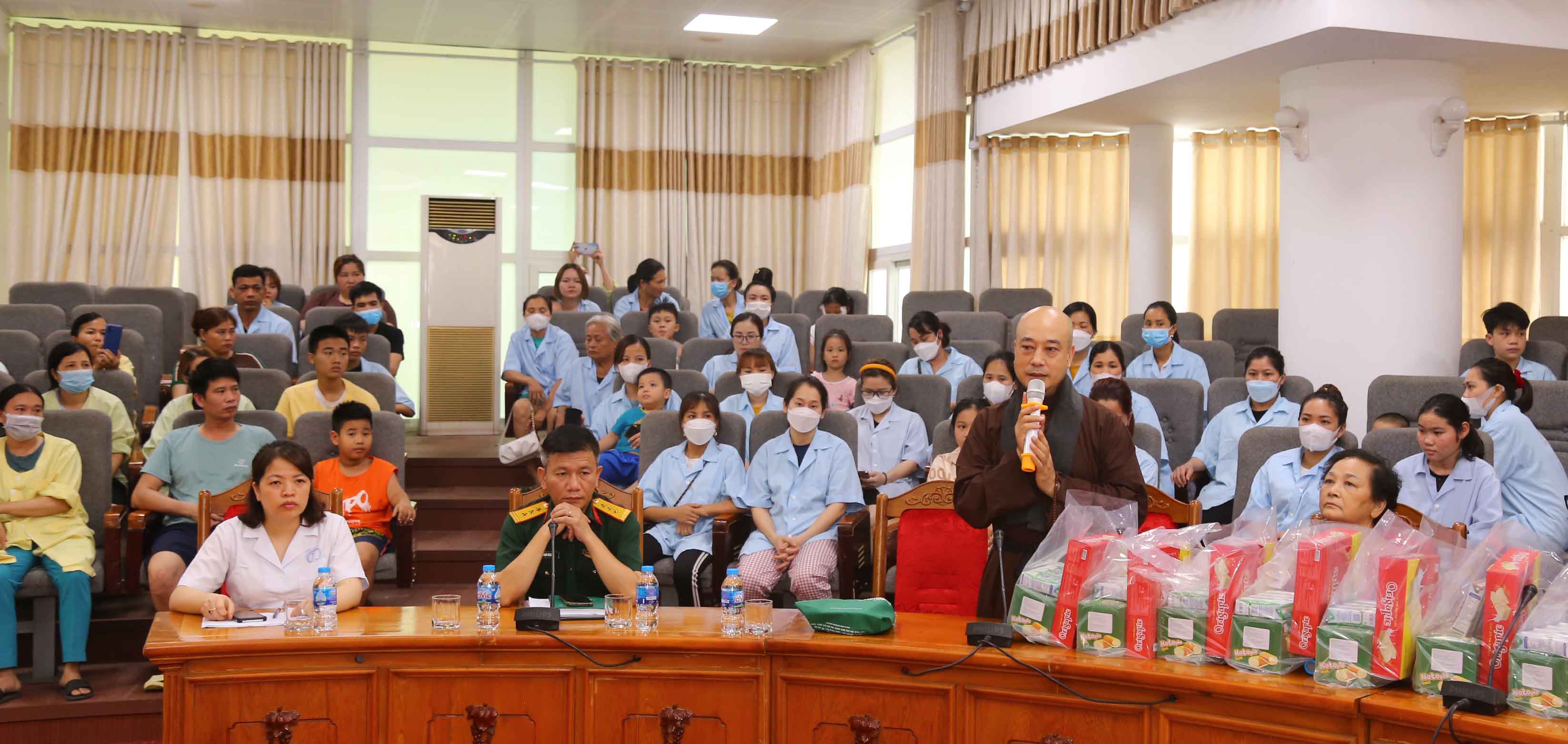 Nhân dịp này, Tổ công tác xã hội và Thượng toạ Thích Đức Tiến, chùa Đa Phúc, Thọ Cầu và nhóm Thiện nguyện Ưu đàm trao 100 xuất quà cho các em nhỏ và gia đình bệnh nhi đang điều trị tại bệnh viện.