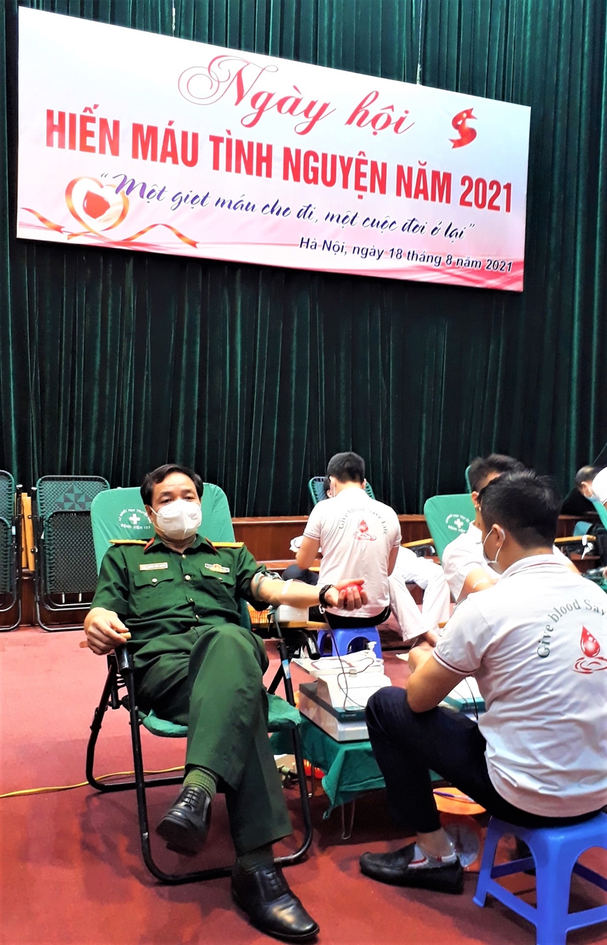 Đại tá, TS. Trương Ngọc Dương, Chính uỷ Bệnh viện tham gia hiến máu
