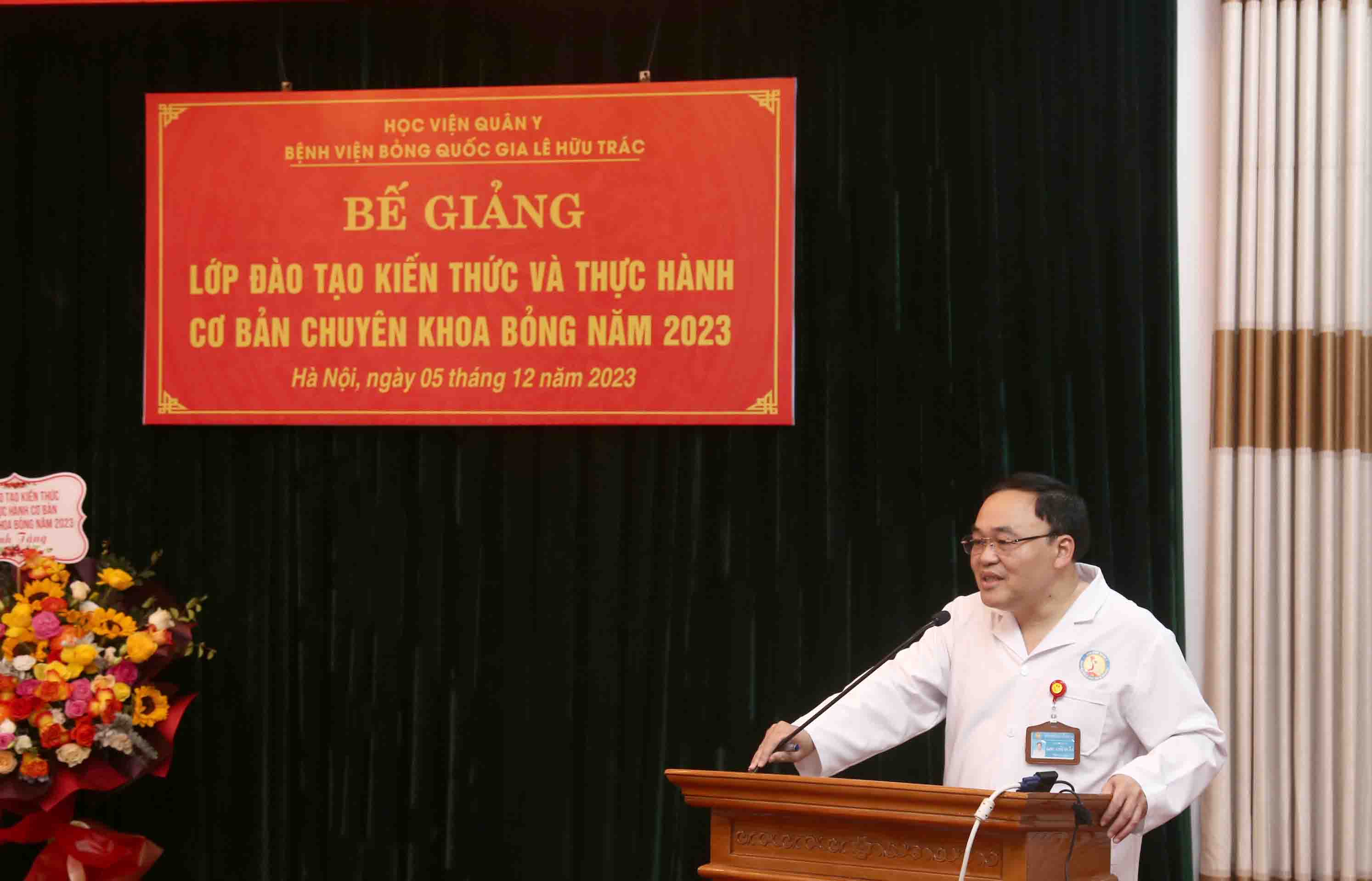Thay mặt Ban lãnh đạo bệnh viện, Đại tá, PGS.TS Chu Anh Tuấn, Phó Giám đốc Bệnh viện cảm ơn sự quan tâm tham gia giảng dạy nhiệt tình của các thầy, cô giảng viên Bộ môn Bỏng và trong thời gian tới Bệnh viện sẽ tổ chức thêm nhiều chương trình đào tạo chuyên sâu tiếp theo nhằm nâng cao chuyên môn cho cán bộ, nhân viên y tế chuyên ngành Bỏng và tuyến dưới.