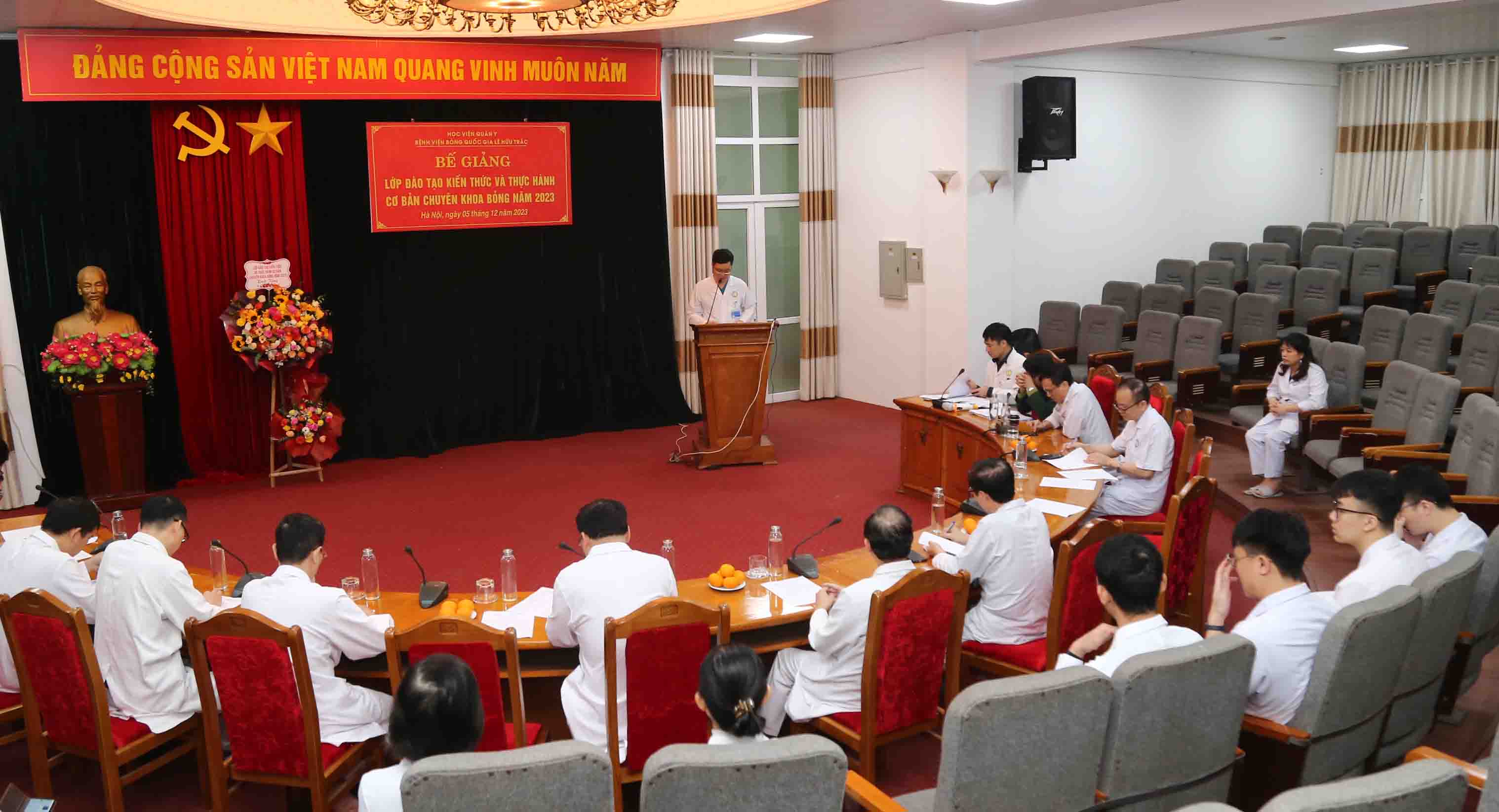 Chiều ngày 05/12/2023, Bệnh viện Bỏng Quốc gia Lê Hữu Trác tổ chức bế giảng Lớp đào tạo kiến thức và thực hành cơ bản chuyên khoa Bỏng năm 2023 cho các bác sĩ mới về bệnh viện công tác và bác sĩ ở tuyến dưới gửi về chưa được đào tạo về chuyên khoa bỏng.