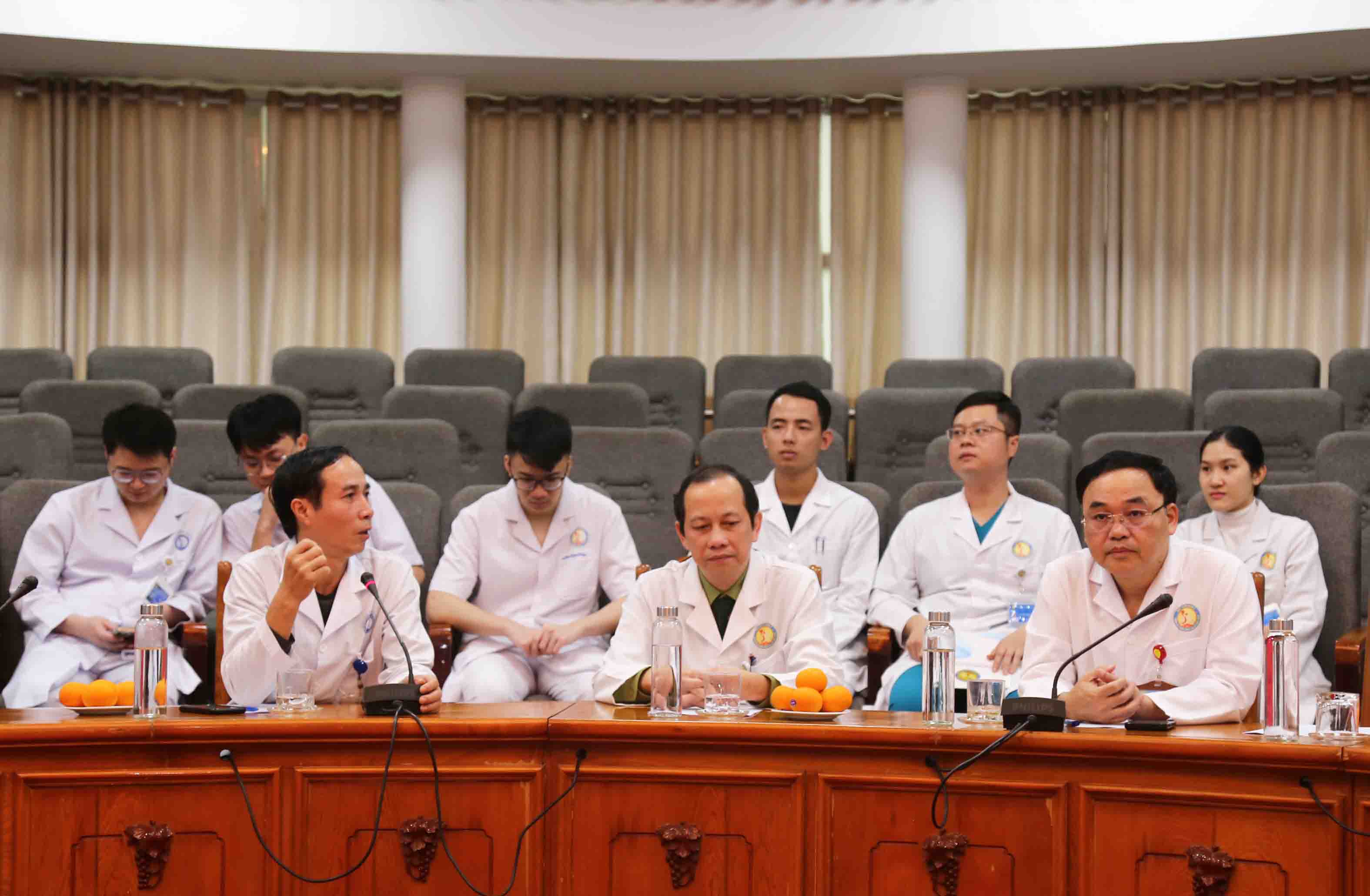 GS.TS. Nguyễn Như Lâm, Giám đốc Bệnh viện, Chủ nhiệm Bộ môn Bỏng (ngồi giữa) dự và chỉ đạo buổi khai giảng