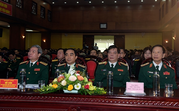 Thừa ủy quyền Chủ tịch nước,Thượng tướng Đỗ Căn gắn Huân chương Lao động hạng Nhất lên Quân kỳ Quyết thắng của đơn vị.
