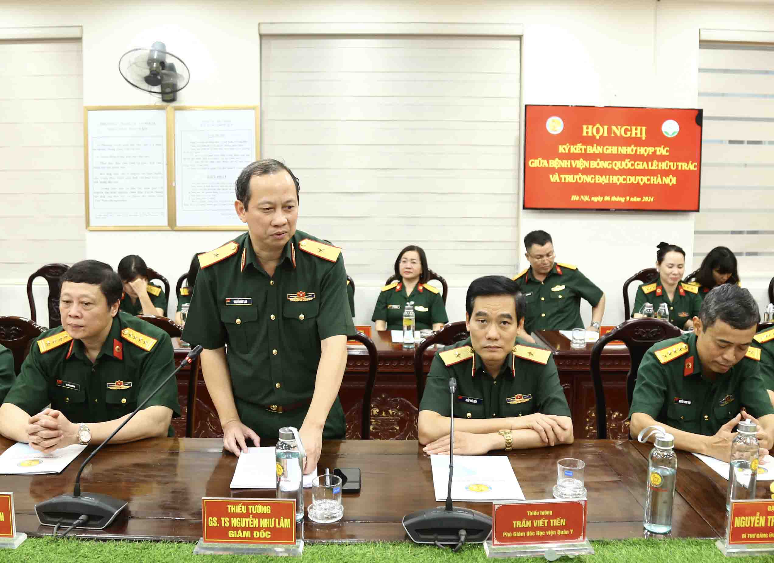 Phát biểu tại hội nghị, Thiếu tướng, GS. TS. Nguyễn Như Lâm, Giám đốc Bệnh viện cho thấy sự hợp tác gắn bó giữa Bệnh viện Bỏng Quốc gia Lê Hữu Trác và Trường Đại học Dược Hà Nội đã được bắt đầu từ những ngày đầu Bệnh viện mới thành lập những năm 1991. Bệnh viện đã mời các giảng viên của trường vào giảng bài, cập nhật, tư vấn về công tác dược bệnh viện; hợp tác nghiên cứu khoa học về dược lâm sàng; các thầy cô của 2 đơn vị đã đồng hướng dẫn luận văn, luận án cho các học viên sau đại học, các đề tài nghiên cứu khoa học đã được bảo vệ thành công.