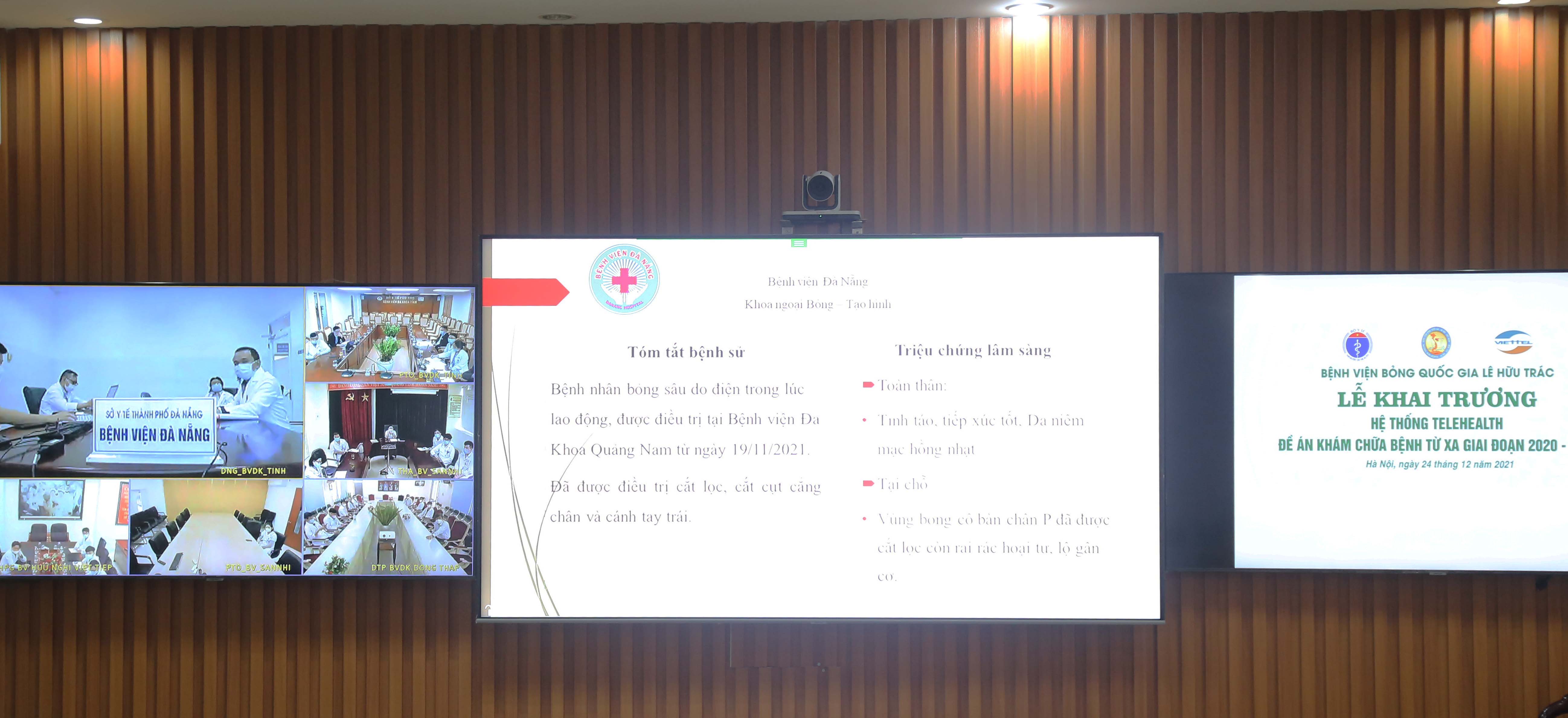 Ngay trong buổi Lễ khai trương, Đại tá, PGS.TS. Nguyễn Ngoc Tuấn, Phó Giám đốc Bệnh viện Bỏng quốc gia Lê Hữu Trác đã chủ trì tiến hành hội chẩn một số ca bệnh khó, phức tạp đang điều trị tại Bệnh viện Đa khoa Đà Nẵng; Bệnh viện đa khoa tỉnh Phú Thọ; Bệnh viện nhi Thanh Hoá.... Với mỗi ca bệnh, đại diện cơ sở y tế mà người bệnh đang điều trị sẽ trình bày tóm tắt bệnh án, tình hình sức khoẻ, phim chụp X-quang, diễn biến quá trình đã điều trị .... sau đó tại điểm cầu Bệnh viện Bỏng quốc gia Lê Hữu Trác các chuyên gia sẽ cùng trao đổi thêm thông tin, thảo luận và đưa ra phương án điều trị tốt nhất cho người bệnh.