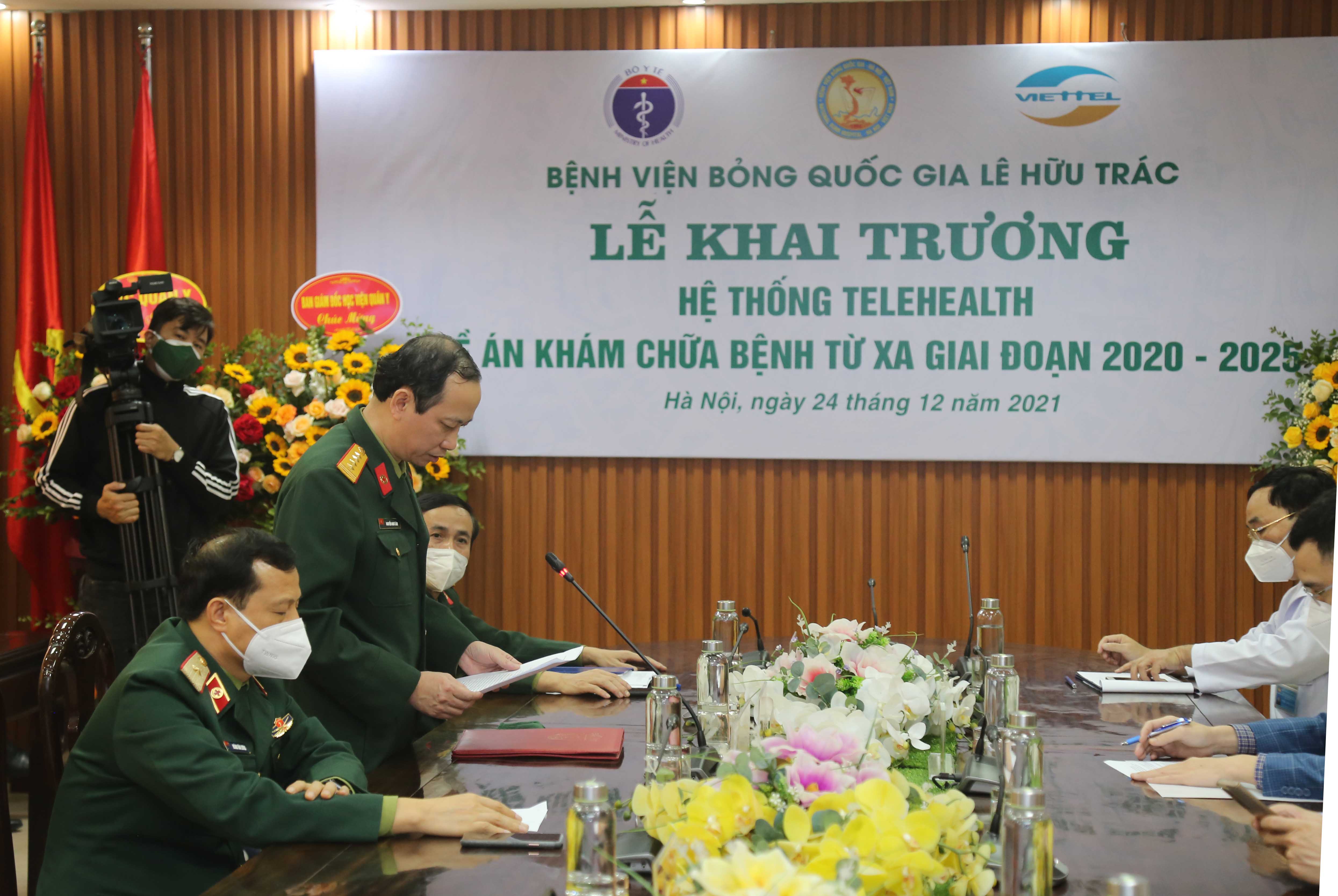 Phát biểu chỉ đạo tại buổi Lễ Thiếu tướng, GS.TS. Hoàng Văn Lương, Phó Giám đốc Học viện Quân y nhấn mạnh rằng: Bệnh viện Bỏng Quốc gia là bệnh viện đầu tiên trong hệ thống các bệnh viện quân y được Bộ Y tế giao làm đầu mối triển khai khám chữa bệnh từ xa. Đây vừa là vinh dự, vừa là trách nhiệm của Bệnh viện. Sự kiên khai trương ngày hôm nay đã đánh dấu sự tham gia một cách có hiệu quả của Bệnh viện Bỏng quốc gia trong quá trình thực hiện đề án khám chữa bệnh từ xa, khảng định quyết tâm của Lãnh đạo Bệnh viện trong việc áp dụng công nghệ và hỗ trợ công tác khám chữa bệnh và đào tạo, giúp tăng cường kết nối hơn nữa với các bệnh viện trong cả nước.