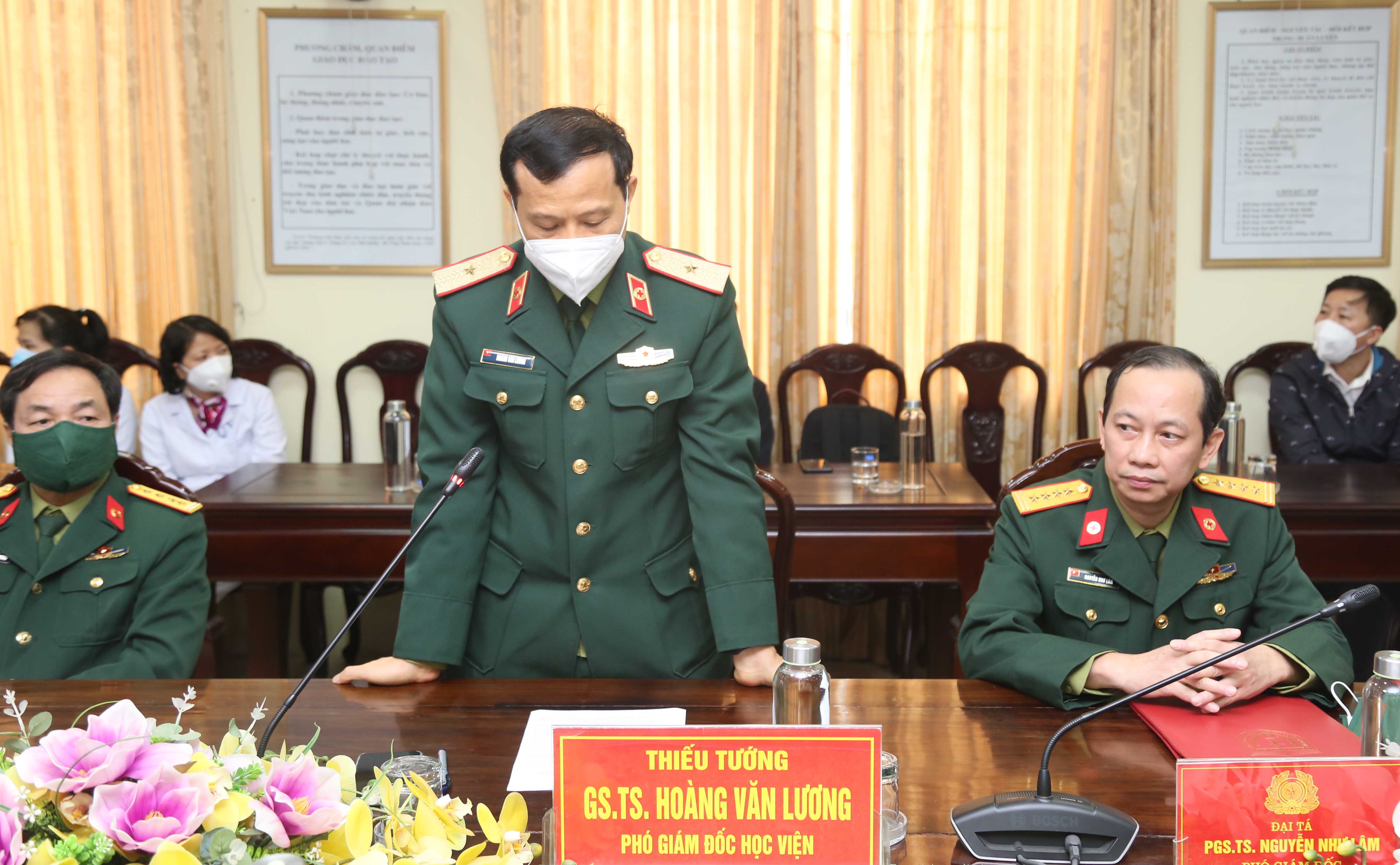 Thiếu tướng, GS.TS. Hoàng Văn Lương, Phó Giám đốc Học viện Quân y phát biểu chỉ đạo tại buổi Lễ
