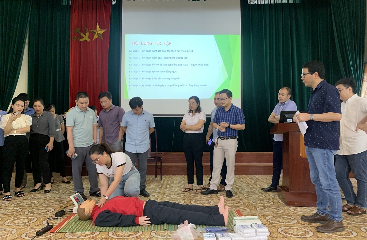 Trong chương trình tập huấn có nội dung khảo sát tại Bệnh viện đa khoa tỉnh Cao Bằng và Trung tâm Y tế Thành phố Cao Bằng để lập kế hoạch thu dung nạn nhân hàng loạt tại cơ sở y tế sát với tình hình thực tế của địa phương.