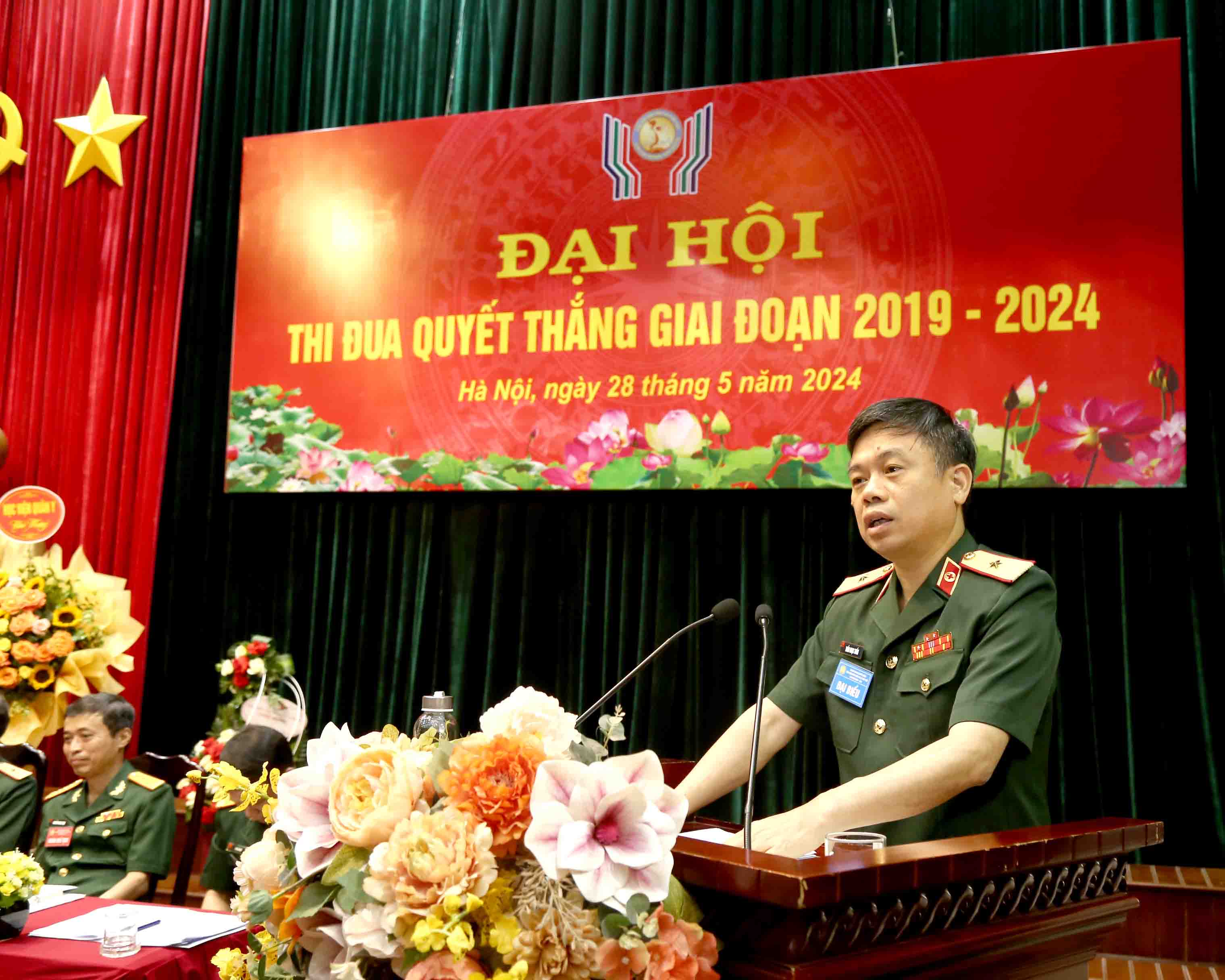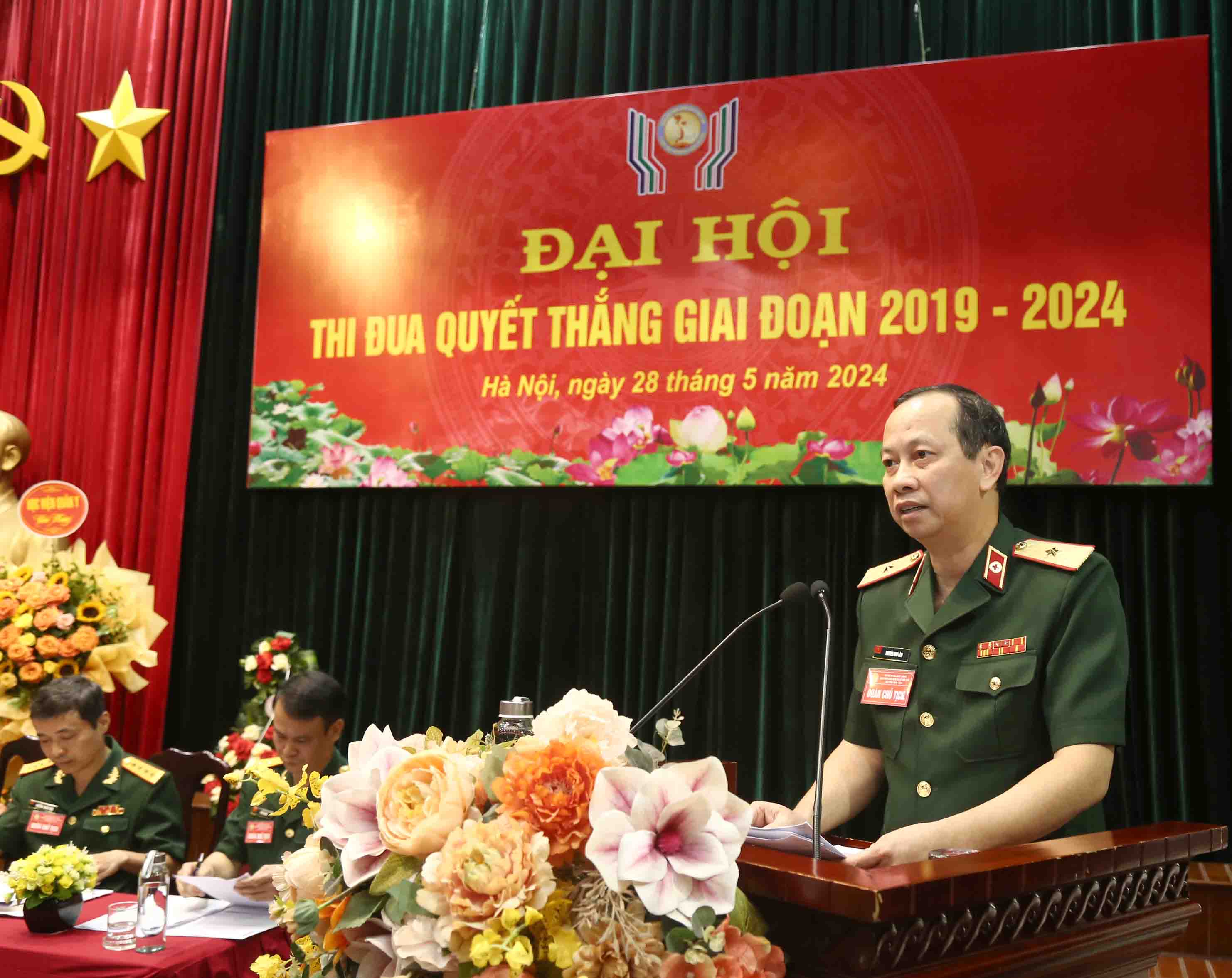 Thiếu tướng, GS. TS. Nguyễn Như Lâm, Giám đốc Bệnh viện trình bầy báo cáo trung tâm tại Đại hội