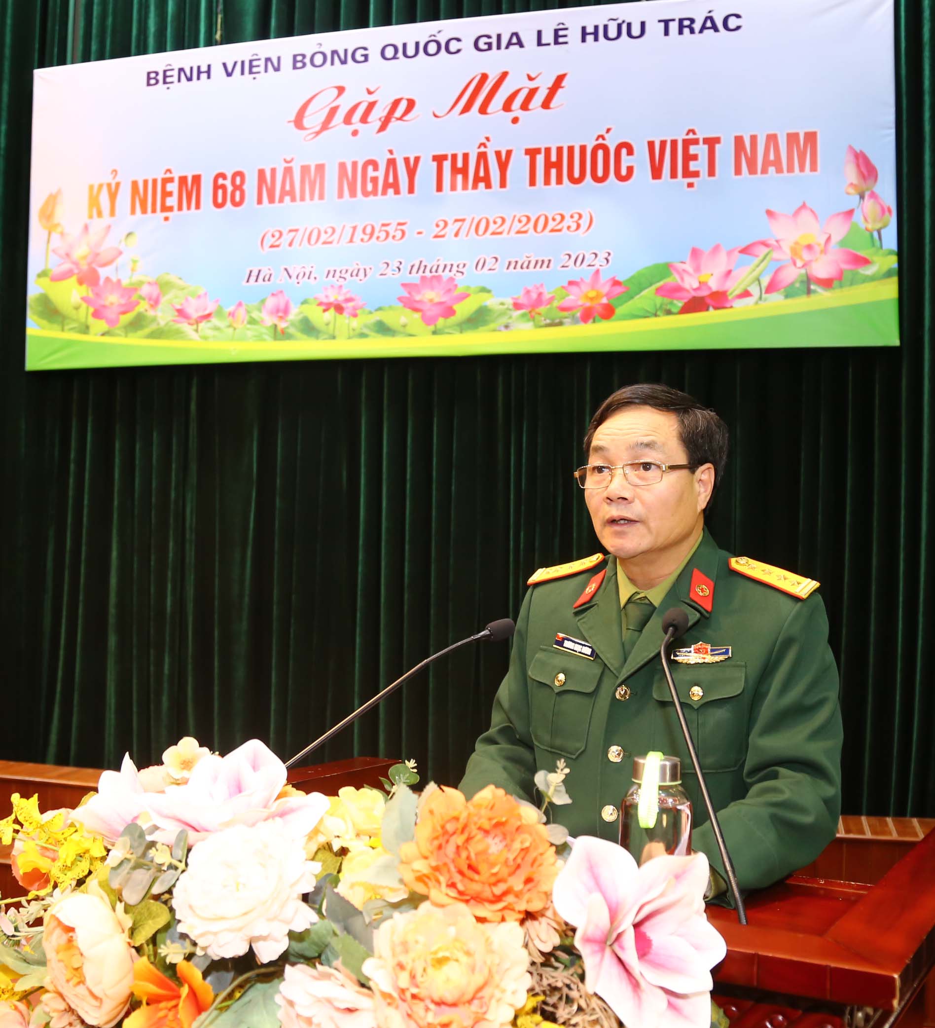 Thay mặt Ban giám đốc Học viện Quân y, Trung tướng, PGS, TS Nguyễn Xuân Kiên, Phó bí thư Đảng ủy, Giám đốc Học viện gửi lời tri ân sâu sắc tới các thế hệ đi trước đã dầy công xây dựng, vun đắp truyền thống của Bệnh viện; biểu dương những kết quả mà Bệnh viện Bỏng quốc gia Lê Hữu Trác đạt được trong những năm qua, đồng chí Giám đốc Học viện Quân y mong muốn, bệnh viện sẽ tiếp tục thực hiện tốt ba nhiệm vụ trọng tâm là: Đào tạo, nghiên cứu và điều trị.