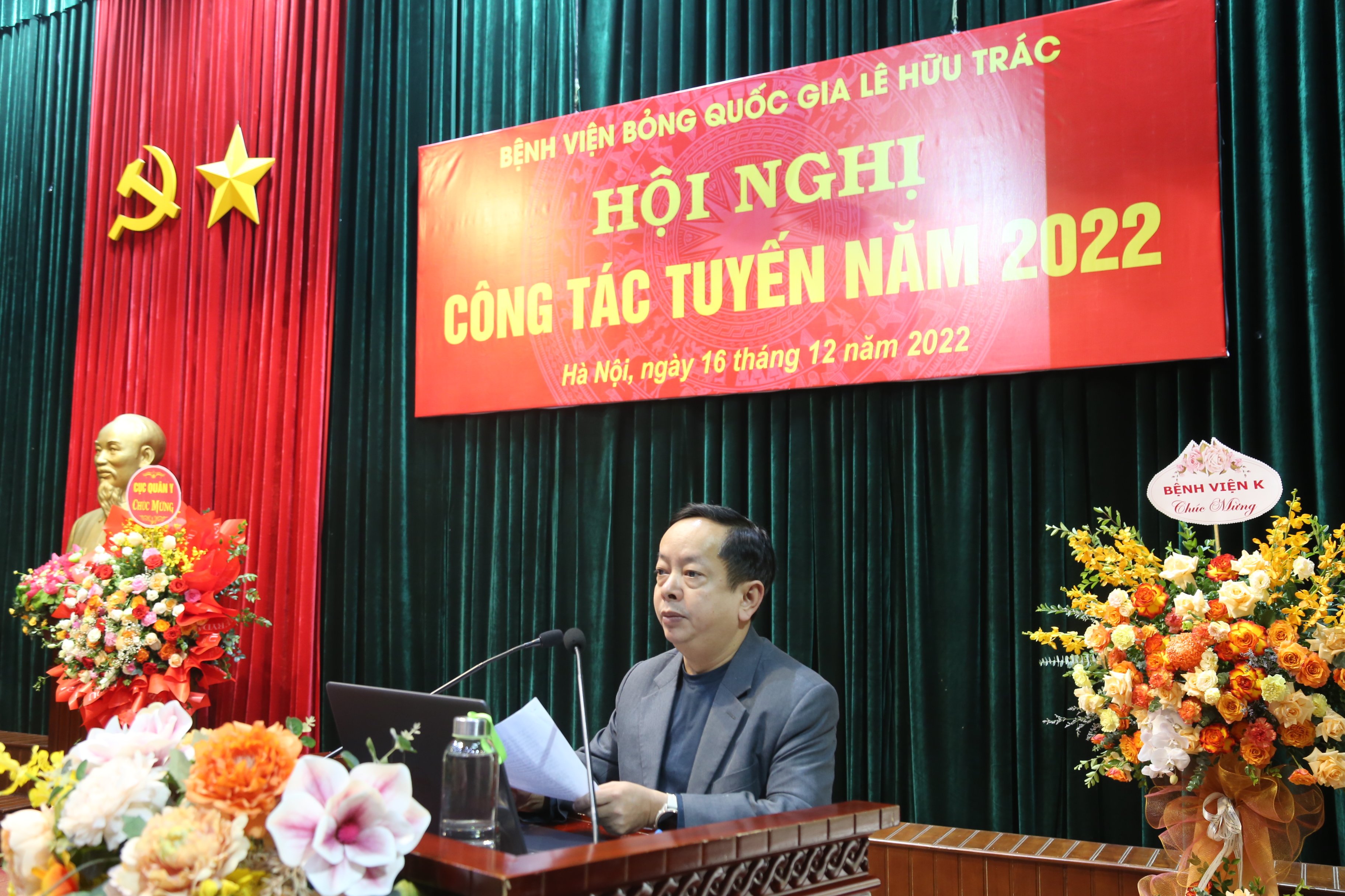 Thực hiện kế hoạch công tác năm 2022, được sự nhất chí và chỉ đạo của Học viện Quân y, Cục Quân y, Bộ Y tế, đặc biệt sau 3 năm dịch COVID-19. Sáng ngày 16 tháng 12 năm 2022, Bệnh viện Bỏng Quốc gia Lê Hữu Trác tổ chức thành công hội nghị công tác tuyến năm 2022 nhằm đánh giá, rút kinh nghiệm công tác tuyến năm 2022 và đề ra những nội dung, chỉ tiêu cho công tác tuyến của Bệnh viện năm 2023, góp phần nâng cao chất lượng khám, chữa bệnh.
