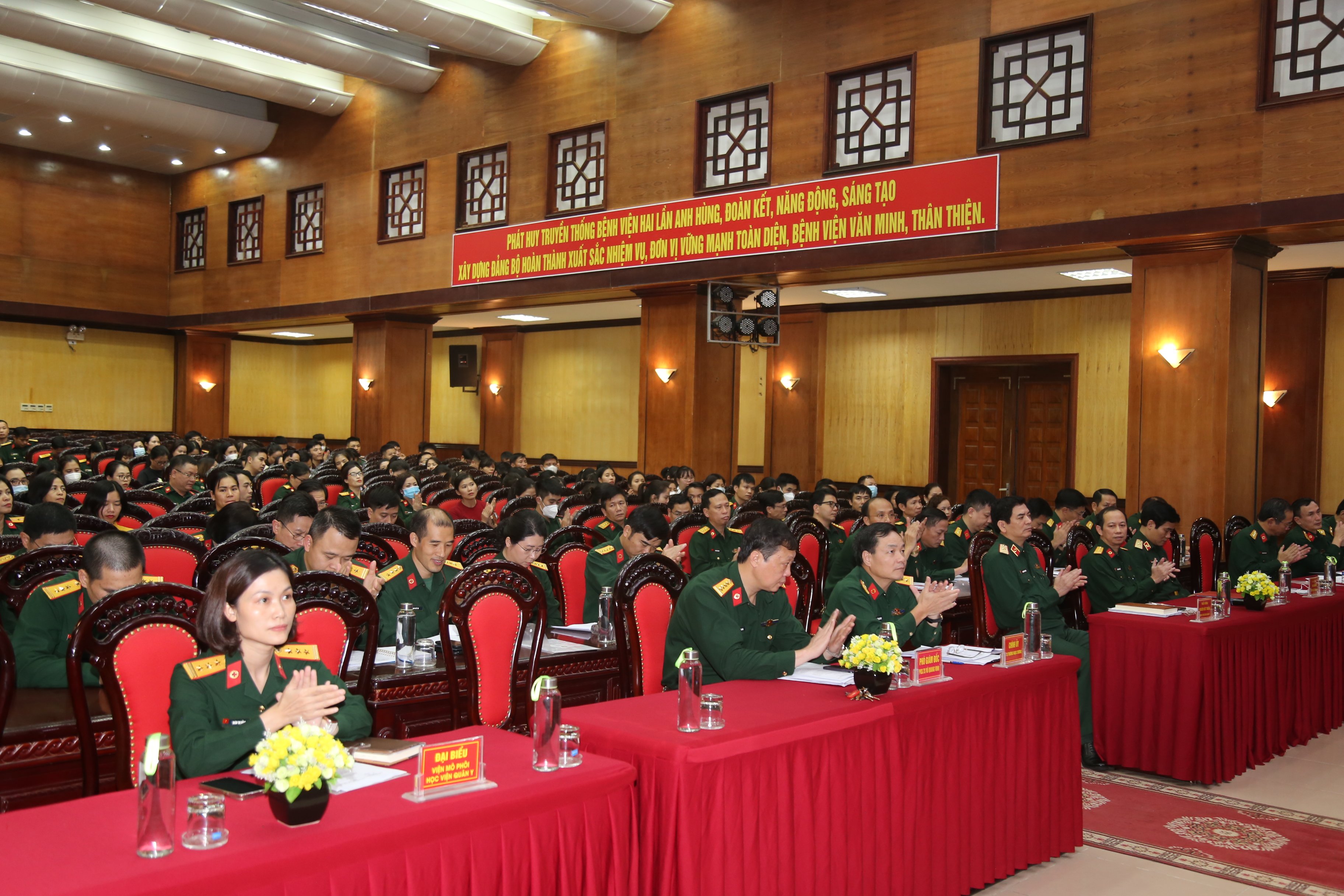 Báo cáo tại hội nghị, Đại tá. GS. TS. Nguyễn Như Lâm, Giám đốc Bệnh viện phát biểu tại hội nghị năm 2022, Bệnh viện thực hiện nhiệm vụ chính trị trong điều kiện tình hình dịch bệnh dần được kiểm soát; đời sống của một bộ phận cán bộ, nhân viên còn nhiều khó khăn; cơ sở hạ tầng của Bệnh viện đang trong giai đoạn sửa chữa, nâng cấp; trang thiết bị một số còn thiếu so với nhu cầu. Tuy nhiên, với tinh thần đoàn kết, dân chủ; quán triệt nghiêm túc nghị quyết của Đảng ủy Học viện Quân y, Bệnh viện đã tập trung triển khai toàn diện các mặt công tác và hoàn thành tốt các nhiệm vụ được giao, nhiều nhiệm vụ hoàn thành xuất sắc theo kế hoạch.