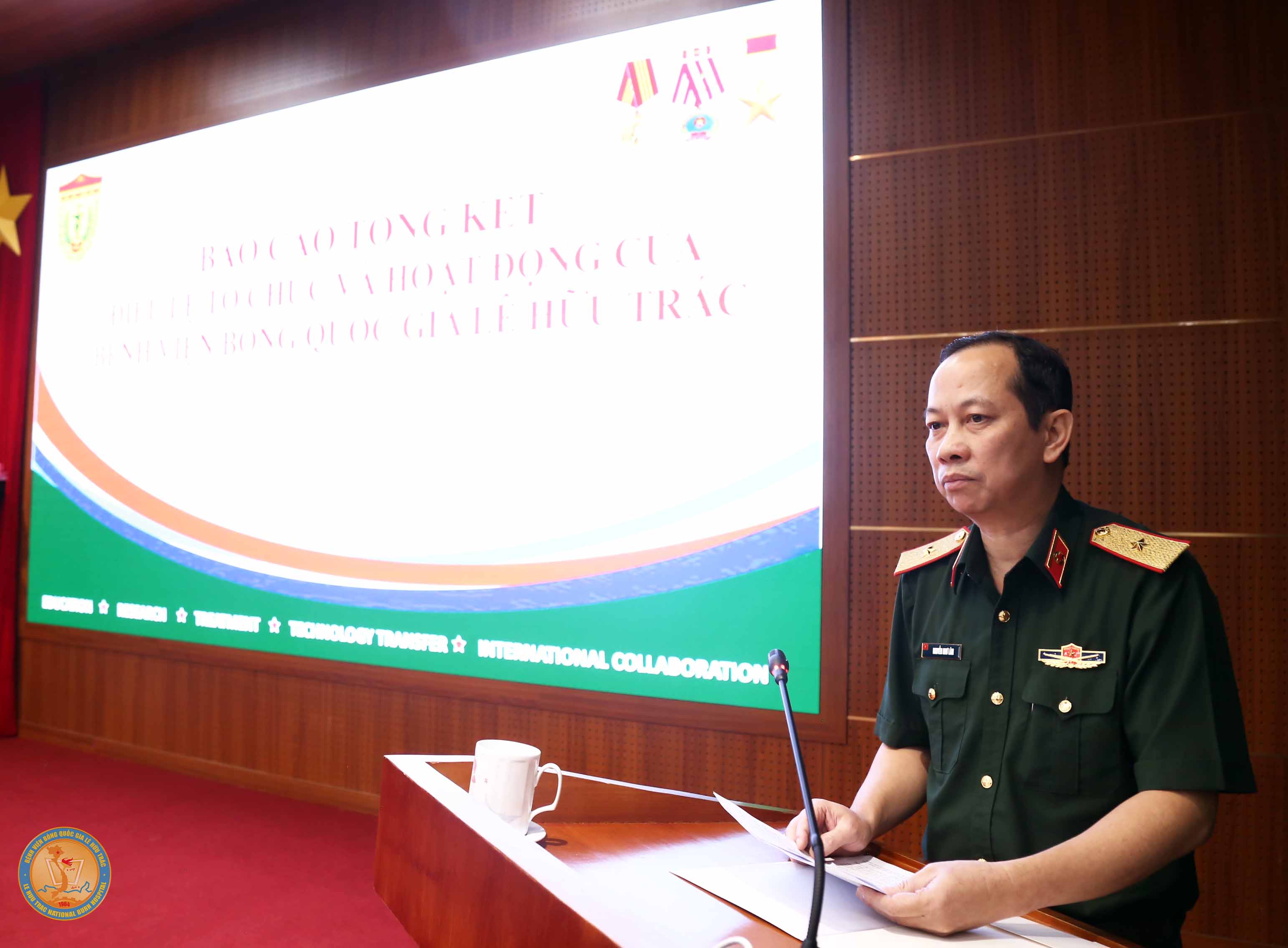 Tại Hội nghị, đồng chí Thiếu tướng, GS.TS. Nguyễn Như Lâm, Giám đốc Bệnh viện Bỏng Quốc gia Lê Hữu Trác trình bày báo cáo tổng kết, nêu bật các thành tựu đã đạt được cũng như những khó khăn, bất cập hiện nay trong quá trình bệnh viện thực hiện nhiệm vụ điều trị, đào tạo, nghiên cứu khoa học, chỉ đạo tuyến. Các báo cáo tham luận tại Hội nghị đã làm rõ hơn những thành tích mà bệnh viện đạt được cũng như đề xuất các kiến nghị, giải pháp nhằm tháo gỡ các bất cập khó khăn về cơ chế đảm bảo tài chính cho các hoạt động của bệnh viện nhằm thực hiện các nhiệm vụ do Nhà nước giao.