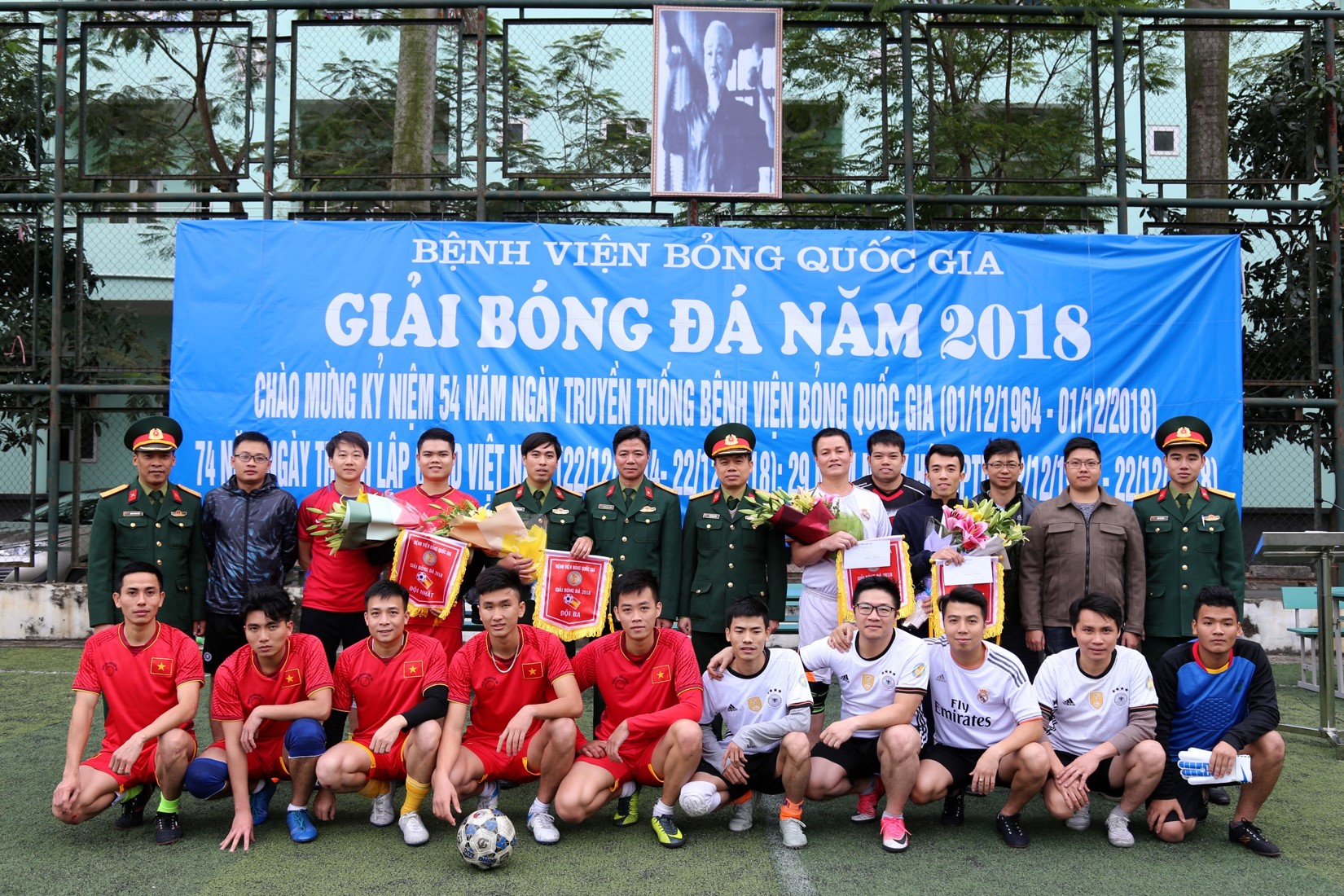 Lãnh đạo Bệnh viện, Ban tổ chức cùng bốn đội tham gia giải bóng đá nam năm 2018
