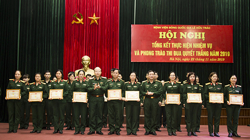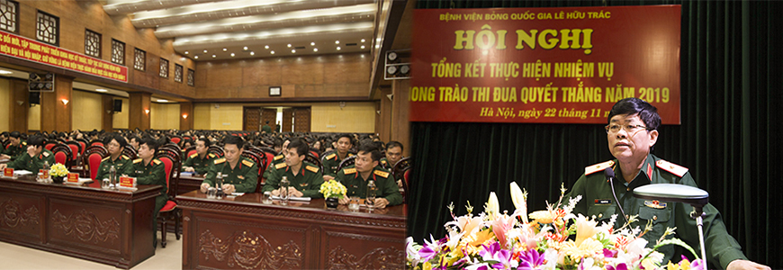 Thay mặt Đảng ủy, Ban Giám đốc Bệnh viện, đồng chí Thiếu tướng, PGS.TS Nguyễn Gia Tiến, Giám đốc Bệnh viện đã báo cáo kết quả thực hiện nhiệm vụ và phong trào thi đua Quyết thắng năm 2019 và đề ra phương hướng, nhiệm vụ phong trào thi đua Quyết thắng năm 2020. Báo cáo tại Hội nghị đồng chí nhấn mạnh rằng “Năm 2019 là năm cuối cùng của nhiệm kỳ Đại hội Đảng bộ Bệnh viện (2015 - 2020), Bệnh viện Bỏng quốc gia Lê Hữu Trác tiếp tục thực hiện hoàn thành các mục tiêu của Nghị quyết Đại hội Đảng bộ Bệnh viện lần thứ 7. Bên cạnh đó, Bệnh viện thường xuyên được sự quan tâm, lãnh đạo, chỉ đạo trực tiếp của Đảng ủy, Ban Gám đốc Học viện; sự chỉ đạo, giúp đỡ của các cơ quan chức năng của Bộ Quốc phòng, nội bộ đơn vị đoàn kết, thống nhất cao; đội ngũ cán bộ, nhân viên, chiến sĩ xác định tốt nhiệm vụ, năng động, sáng tạo xây dựng Bệnh viện trở thành cơ sở đào tạo, điều trị chuyên khoa hàng đầu trong quân đội và cả nước... ”. Trong năm vừa qua, Bệnh viện đã khám bệnh cho 16.195 bệnh nhân; thu dung và điều trị cho 14.217 BN; tỷ lệ sử dụng giường thực kê: 88,6%; tỷ lệ tử vong: 1,86%; tỷ lệ khỏi ra viện: 95%; tỷ lệ chuyển viện: 0,99%; ngày điều trị trung bình: 23 ngày; tổng số ca phẫu thuật: 5.749 (loại đặc biệt: 65 ca; loại I: 3187 ca; loại II: 2468 ca; loại III: 38 ca); tỷ lệ tai biến: 0; Số vụ bỏng hàng loạt: 8 vụ; LA50 bỏng chung: 65,24%; LA50 bỏng sâu: 34,23%.