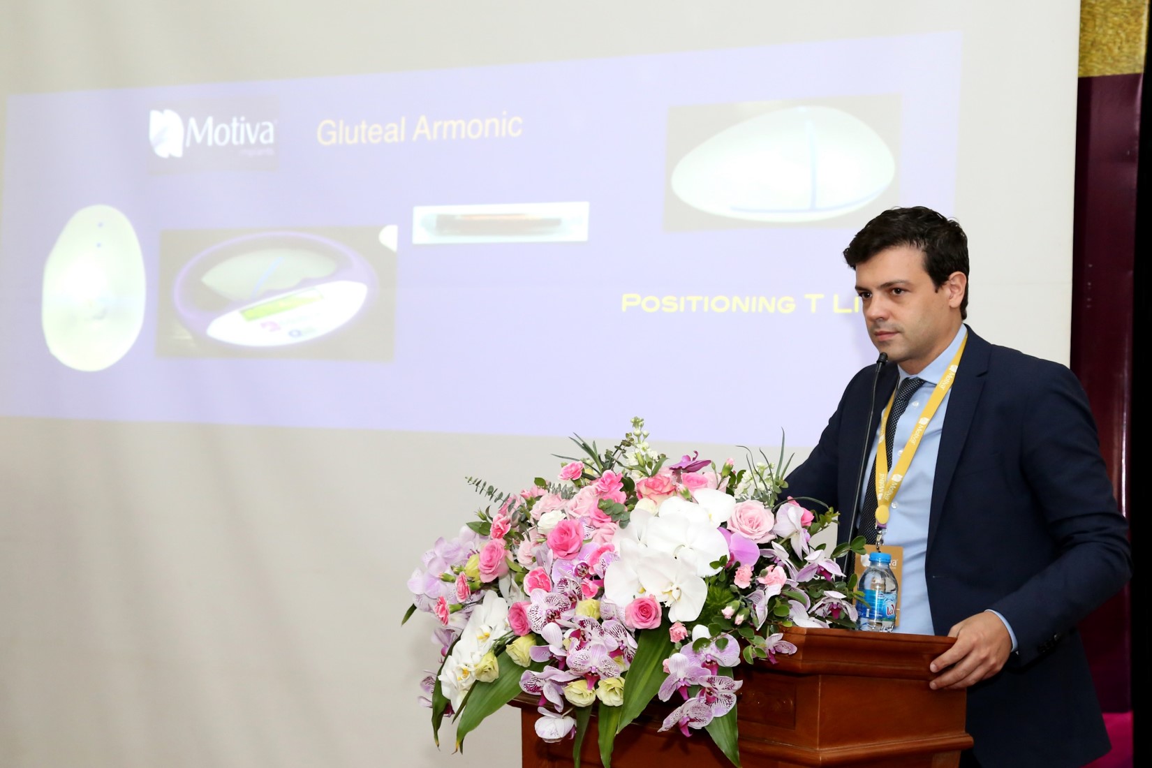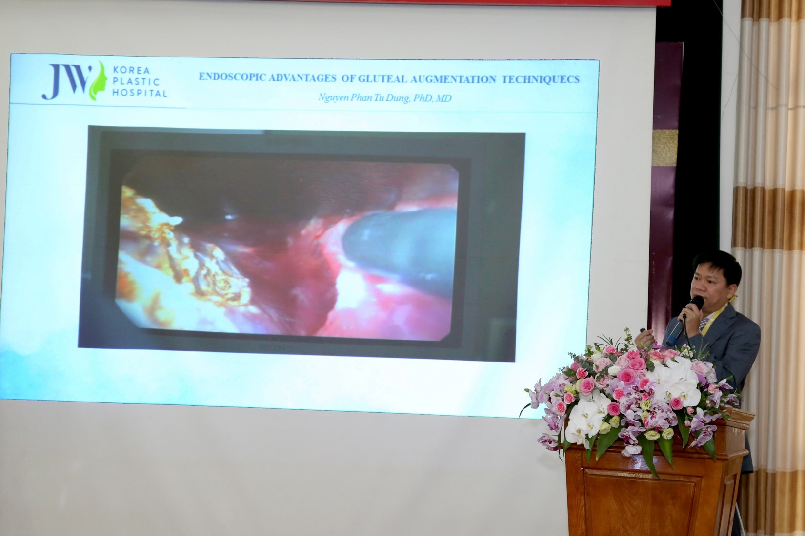 Đã có 150 học viên đến từ các trung tâm phẫu thuật tạo hình, thẩm mỹ trong toàn quốc tham dự. Trong chương trình tập huấn, các học viên đã được nghe PGS.TS.Vũ Quang Vinh, Giám đốc Trung tâm PTTH - TM & Tái tạo, Bệnh viện Bỏng Quốc gia trao đổi về phẫu thuật tạo hình nâng mông ở Việt Nam; TS.BS. Nguyễn Phan Tú Dung thuyết trình về ưu điểm tạo khoang túi bằng phương pháp nội soi; Tiến sỹ, bác sỹ Godoy Paulo Bio, chuyên gia nâng mông hàng đầu Thế giới đến từ Brazil thuyết trình: “Tạo hình lại dáng mông với mô cấy và cách lựa chọn cấy đúng, cách điều trị và phòng tránh biến chứng trong nâng mông thẩm mỹ”. Bác sỹ Godoy Paulo Bio cũng đã trả lời nhiều câu hỏi từ học viên về các biến chứng và cách xử lý sau phẫu thuật nâng mông. Buổi chiều cùng ngày, các học viên cũng được xem mổ thị phạm tại phòng mổ Bệnh viện Bỏng Quốc gia qua truyền hình trực tiếp về vị trí đặt mô cấy trong cơ kết hợp với cấy ghép cho bệnh nhân.