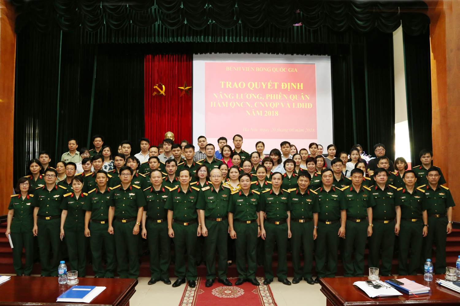Dự và chỉ đạo buổi trao quyết định có Thiếu tướng, PGS.TS.Nguyễn Gia Tiến, Giám đốc Bệnh viện, các đồng chí trong Đảng ủy - Ban giám đốc Bệnh viện, các đồng chí lãnh đạo các khoa ban, cùng các đồng chí lên lương, phiên quân hàm trong toàn Bệnh viện.