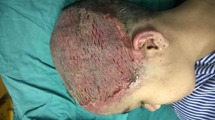Hình ảnh tổn thương sau khi được cắt hoại tử và ghép da tự thân