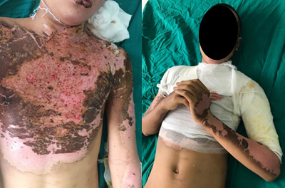 Trịnh Minh H. 17 tuổi. Ngày 4/1/2019 sau khi trộn bột lưu huỳnh và KClO3 , H. đã dùng muôi để nghiền bột hóa chất. Chất nổ bùng lên gây bỏng. Nhập Bệnh viện Bỏng ngày 5/1/2019 với chẩn đoán: Bỏng lửa thuốc pháo 50%(10%) độ II, III, IV mặt, cổ, hai tay, hai chân.