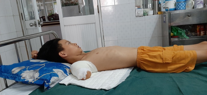 Bệnh nhi sau phẫu thuật cắt cụt 1/3 dưới cánh tay phải (11/5/2020)
