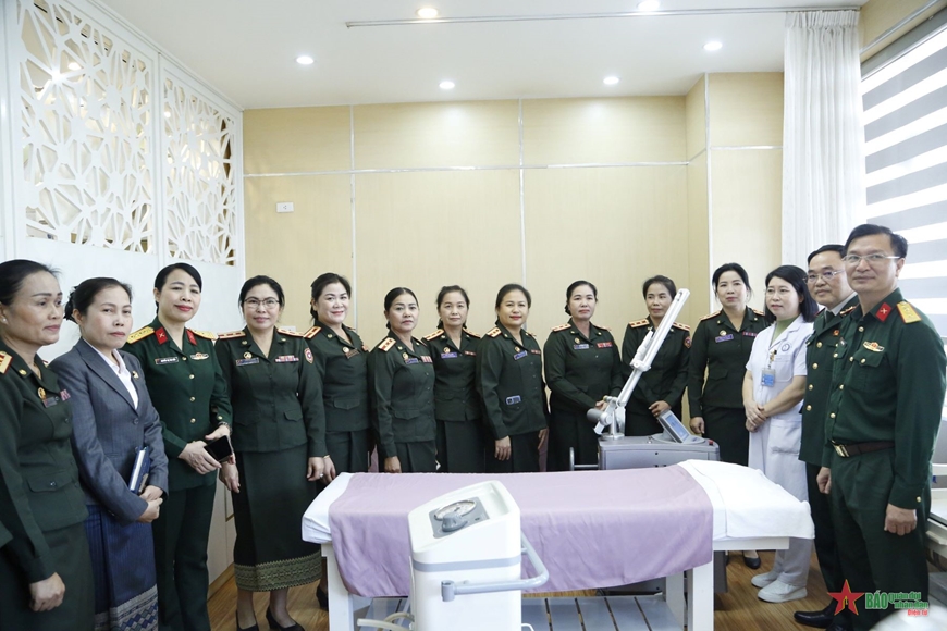 Đoàn cán bộ phụ nữ Quân đội nhân dân Lào thăm Bệnh viện Bỏng quốc gia Lê Hữu Trác.
