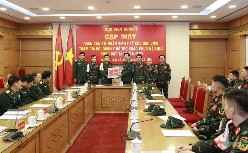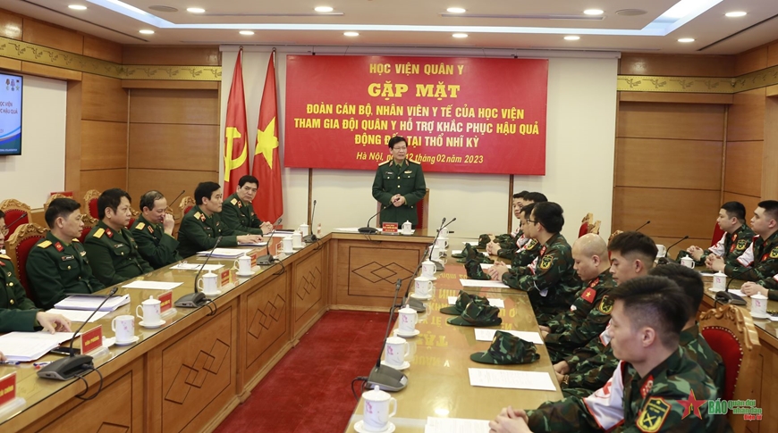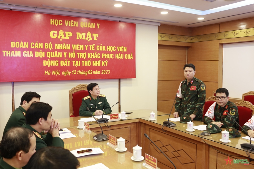 Chiều 12-2, Học viện Quân y đã tổ chức buổi gặp mặt đoàn cán bộ, nhân viên y tế của học viện tham gia Đội quân y hỗ trợ khắc phục hậu quả động đất tại Thổ Nhĩ Kỳ