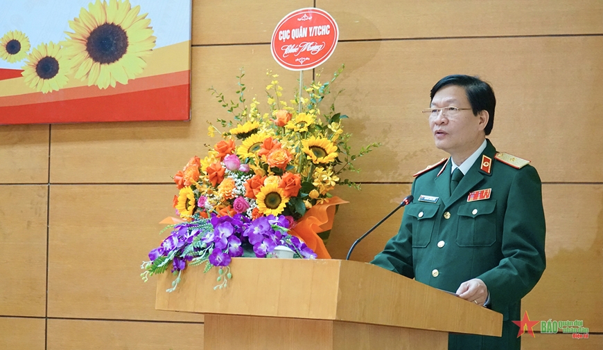Thiếu tướng, PGS, TS Nguyễn Xuân Kiên, Giám đốc Học viện Quân y phát biểu tại buổi Lễ (ảnh nguồn QĐND điện tử)