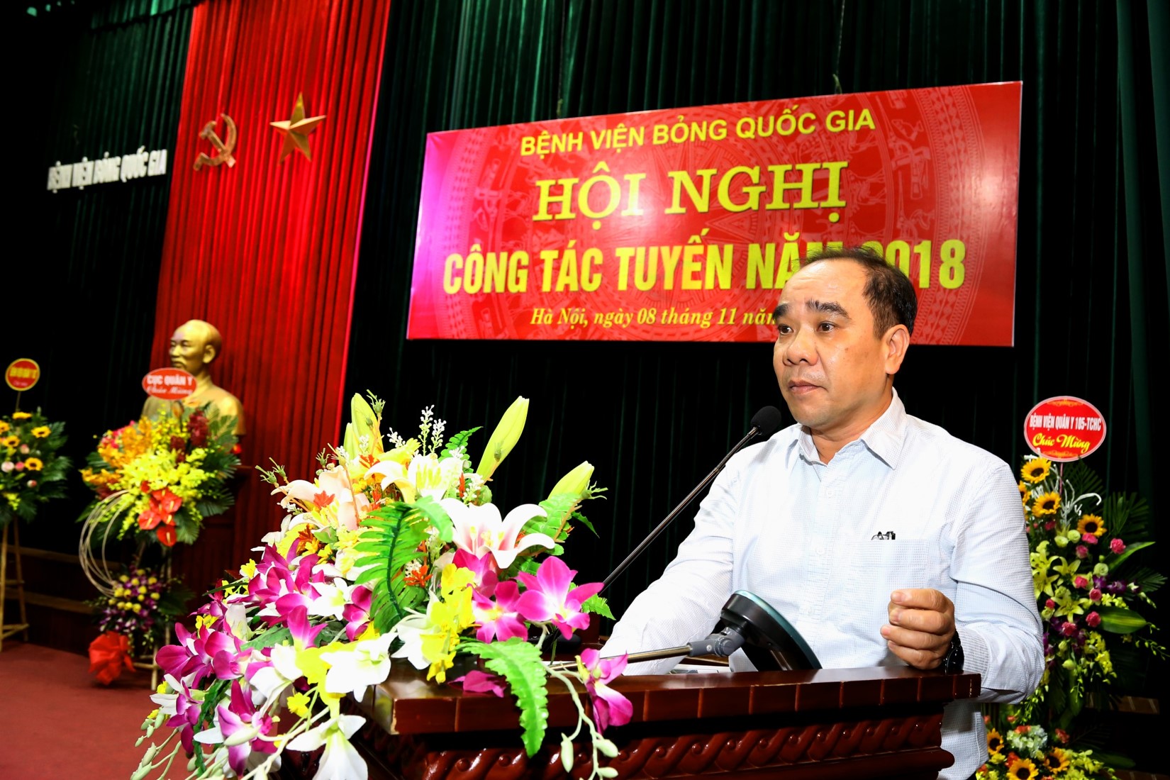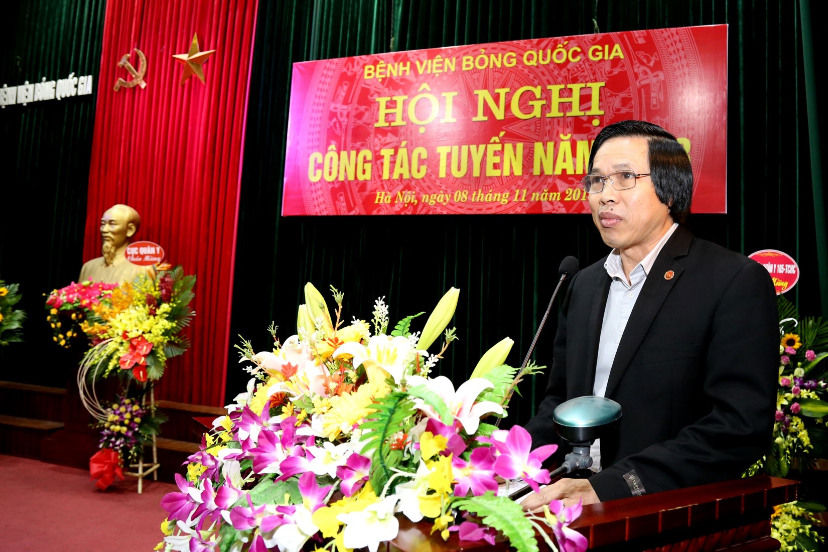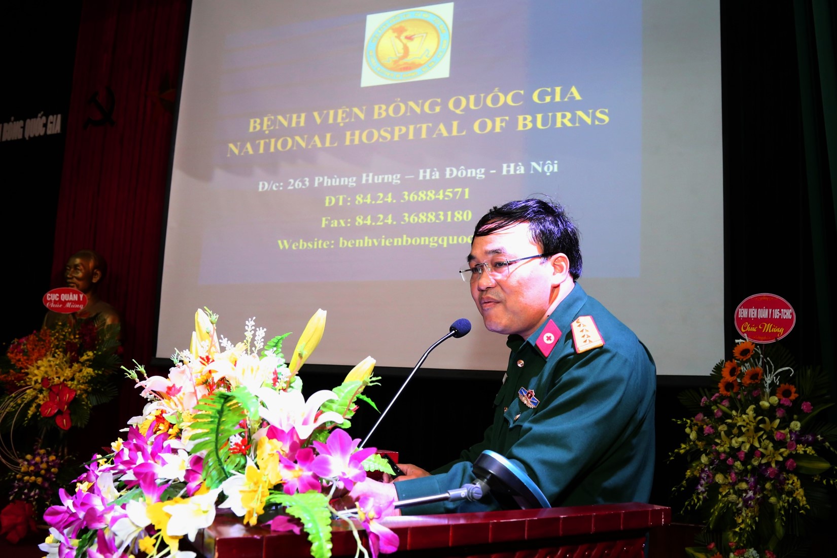 Phát biểu kết luận Hội nghị, Thiếu tướng, PGS.TS Nguyễn Gia Tiến, Giám đốc Bệnh viện nhấn mạnh: Mục tiêu của hội nghị là đánh giá tình hình công tác điều trị bỏng trong toàn quốc trong năm 2018; Đồng thời đưa ra các giải pháp cụ thể nhằm nâng cao chất lượng điều trị, phối hợp có hiệu quả giữa các tuyến nhằm tăng cường công tác chỉ đạo tuyến trong năm 2019; Hội nghị là cơ hội tăng cường trao đổi hai chiều, góp phần gắn kết chặt chẽ hơn giữa các cấp của mạng lưới điều trị bỏng, liền vết thương và giúp cho người bệnh nhận được sự chăm sóc tốt nhất ngay tại địa phương; Đồng chí mong muốn nhận được sự ủng hộ nhiệt tình của lãnh đạo, chỉ huy các đơn vị và sự phối hợp hoạt động nhằm khắc phục khó khăn, bảo đảm cho các mặt công tác đi vào nề nếp để đáp ứng ngày càng tốt hơn yêu cầu nhiệm vụ trong các tuyến điều trị bỏng.