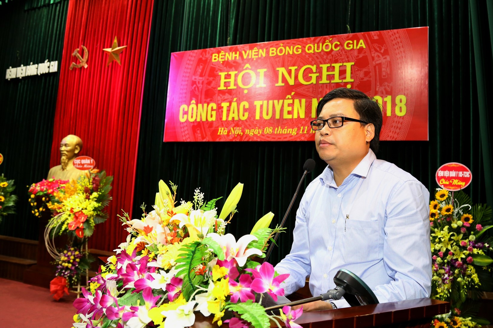 Tại Hội nghị, đại biểu đã được nghe Đại tá, PGS.TS. Chu Anh Tuấn, Trường Phòng Kế hoạch tổng hợp trình bày báo cáo trung tâm Hội nghị. Nội dung báo cáo gồm: tình hình thu dung và điều trị bệnh nhân bỏng, vết thương và phẫu thuật tạo hình trong năm 2018; giới thiệu một số các kỹ thuật cao thực hiện tại Viện. Việc ứng dụng các kỹ thuật cao đã giúp cải thiện chất lượng điều trị bệnh nhân, cứu sống được nhiều bệnh nhân bỏng nặng và rất nặng, góp phần phục hồi chức năng và thẩm mỹ cho bệnh nhân di chứng bỏng, vết thương; Báo cáo cũng nêu bật kết quả thực hiện công tác chỉ đạo tuyến, Đề án 1816 năm qua, phương hướng kế hoạch thực hiện năm 2019; nhấn mạnh các bệnh viện tuyến dưới cần củng cố cơ sở vật chất phục vụ cấp cứu bệnh nhân bỏng; phải có đồng bộ kíp kỹ thuật: bác sỹ, điều dưỡng chuyên khoa; nắm vững các quy định về phân tuyến bỏng, quy trình sơ cứu, cấp cứu và điều trị bỏng theo tuyến.