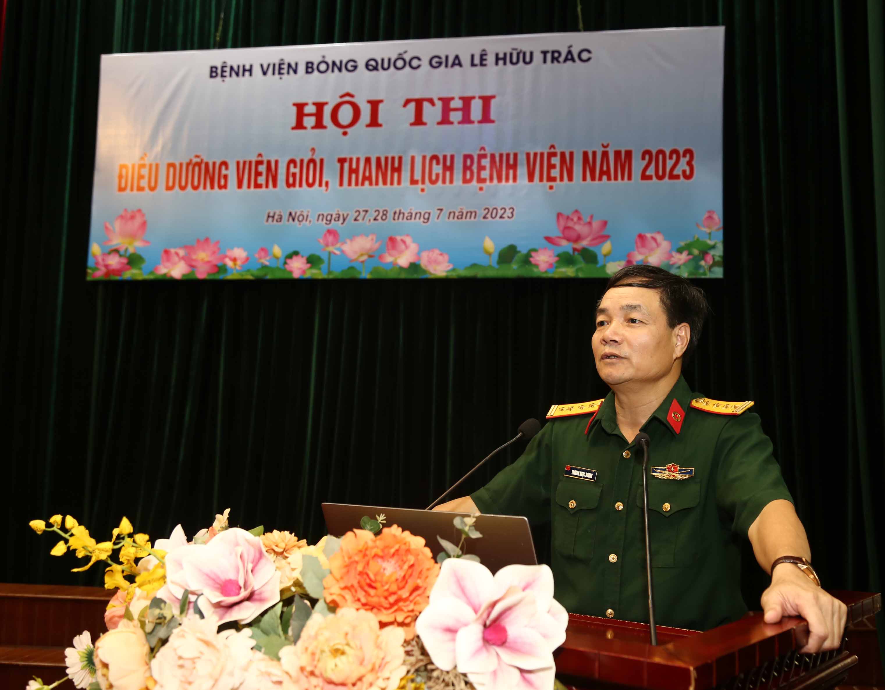 Phát biểu khai mạc, Đại tá, TS. Trương Ngọc Dương nhấn mạnh: Hội thi được tổ chức nhằm củng cố, cập nhật kiến thức, tạo phong trào học tập sôi nổi, nâng cao trình độ chuyên môn nghiệp vụ, rèn luyện đạo đức nghề nghiệp, nâng cao kỹ năng thực hành và giao tiếp ứng xử của điều dưỡng, kĩ thuật viên trong toàn bệnh viện. Đây cũng là dịp kiểm tra, đánh giá toàn diện về trình độ, năng lực chuyên môn, là cơ hội để các điều dưỡng học hỏi, trao đổi kinh nghiệm công tác, góp phần hoàn thiện nhiệm vụ chăm sóc toàn diện người bệnh ngày càng tốt hơn. Điều dưỡng là người giữ vai trò quan trọng trong việc chăm sóc sức khỏe, giao tiếp trực tiếp, lắng nghe những vấn đề và nhu cầu của bệnh nhân từ đó lên kế hoạch chăm sóc hiệu quả, giúp người bệnh yên tâm điều trị.