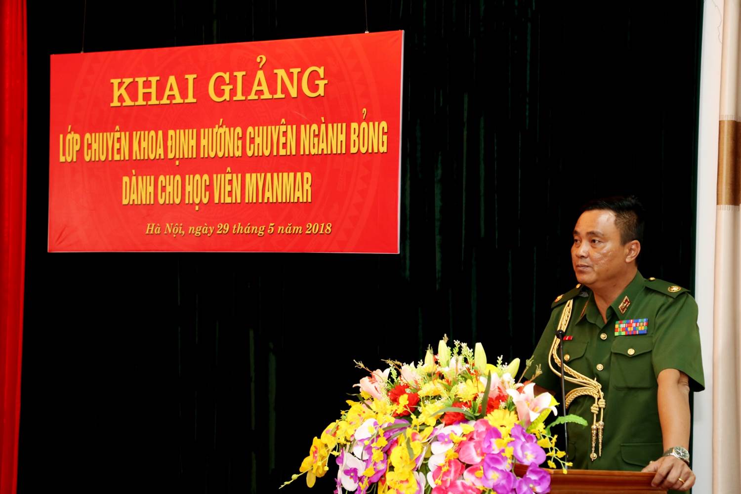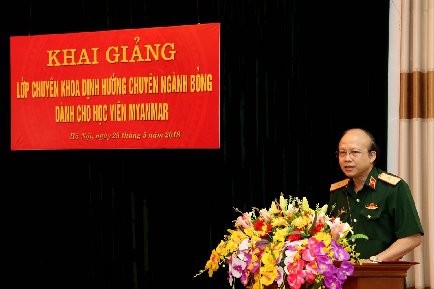 Tại buổi khai giảng, Thiếu tướng, GS.TS. Đỗ Quyết, Giám đốc Học viện Quân y đã phát biểu: "Trong những năm qua, Học viện cũng đã đào tạo cho nhiều lớp học viên quốc tế, đến từ các nước khác nhau như Campuchia, Lào, Cuba, Đức, … Riêng đối với chuyên ngành Bỏng, Viện Bỏng Quốc gia là bệnh viện tuyến cuối, đầu ngành cả trong và ngoài quân đội, được giao làm nhiệm vụ chỉ đạo tuyến trong phạm vi cả nước. Từ năm 2012, Viện đã trực tiếp đào tạo cho 01 kíp bác sỹ, điều dưỡng Myanmar. Trong khuôn khổ hợp tác giữa quân đội hai nước Việt Nam – Myanmar hiện nay, với việc được giao đào tạo chuyên khoa định hướng bỏng cho các 6 bác sỹ, điều dưỡng Myanmar là minh chứng cho sự tin tưởng của Bộ Quốc phòng Việt Nam và Bộ Quốc phòng Myanmar đối với Học viện Quân y và Viện Bỏng Quốc gia nói riêng. Để đảm bảo sự thành công của khóa học, đến nay công tác chuẩn bị của Học viện đã hoàn thành, bao gồm xây dựng chương trình đào tạo chi tiết, phù hợp; biên soạn bản giáo trình bằng tiếng Anh; bố trí chỗ ăn, nghỉ thuận tiện cho các học viên". Đồng thời đồng chí chỉ đạo: Trong thời gian tới, Viện Bỏng Quốc gia phối hợp tốt với các đơn vị liên quan (Phòng Sau đại học, Phòng KHQS, Hệ Quốc tế, ...), quán triệt các Bộ môn, các giảng viên chấp hành quy chế đối ngoại quân sự; thực hiện nghiêm túc chương trình đào tạo; tổ chức lên lớp lý thuyết, hướng dẫn lâm sàng đúng quy định, nhằm đảm bảo chất lượng đào tạo theo đúng mục tiêu, yêu cầu đề ra.