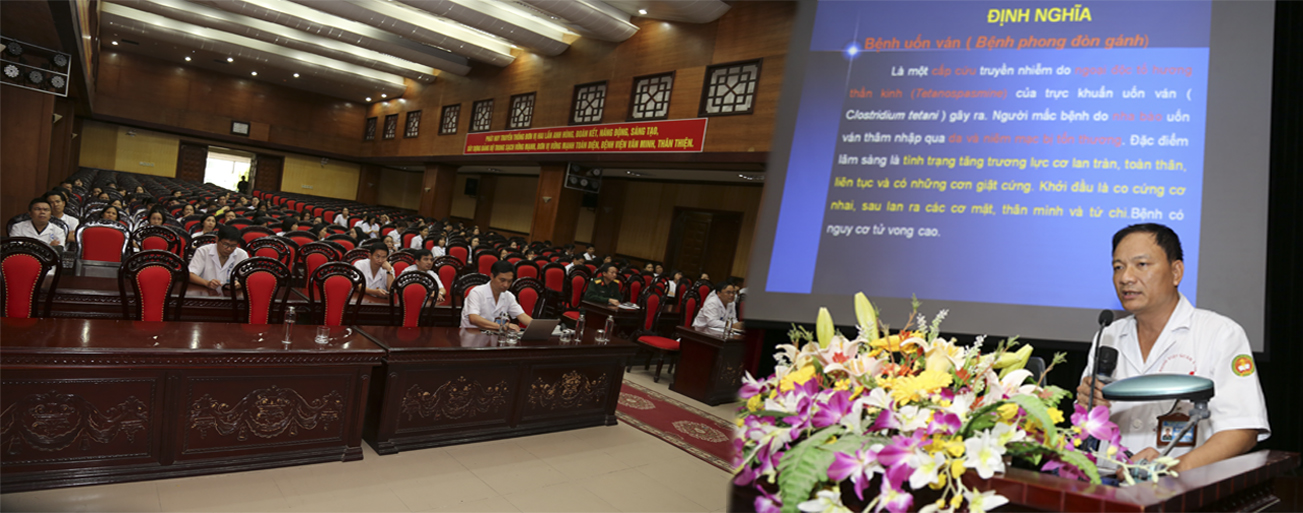Trong những năm gần đây, tại Bệnh viện Bỏng quốc gia Lê Hữu Trác đã ghi nhận nhiều trường hợp người bệnh bỏng bị uốn ván. Tuy nhiên, hiểu biết của nhân viên y tế về mức độ nguy hiểm, cách dự phòng và chẩn đoán, điều trị bệnh uốn ván còn chưa đầy đủ. Trong khuôn khổ buổi tập huấn, Đại tá, PGS.TS Hoàng Tiến Tuyên (Phó Chủ nhiệm Khoa truyền nhiễm/ Bệnh viện Quân y 103; giảng viên Bộ môn Truyền nhiễm/ Học viện Quân y) đã cung cấp những kiến thức cập nhật về đường lây nhiễm, dự phòng, chẩn đoán, xử lý vết thương, trung hòa độc tố, điều trị chống co cứng co giật, dự phòng bội nhiễm,… Đồng thời, PGS.TS Hoàng Tiến Tuyên cũng khuyến cáo: Bệnh uốn ván rất dễ phòng, nhưng lại khó chữa. Do đó, chích ngừa chủ động phòng bệnh uốn ván là việc nên làm. Với những người bị thương, bị bỏng nhưng chưa tiêm phòng uốn ván, ngay sau khi xử lý vết thương cần được tiêm vắc xin uốn ván và huyết thanh kháng uốn ván càng sớm càng tốt. Đặc biệt, cần lưu ý khử trùng và tiệt khuẩn buồng bệnh, dụng cụ y tế khi điều trị bệnh nhân uốn ván.