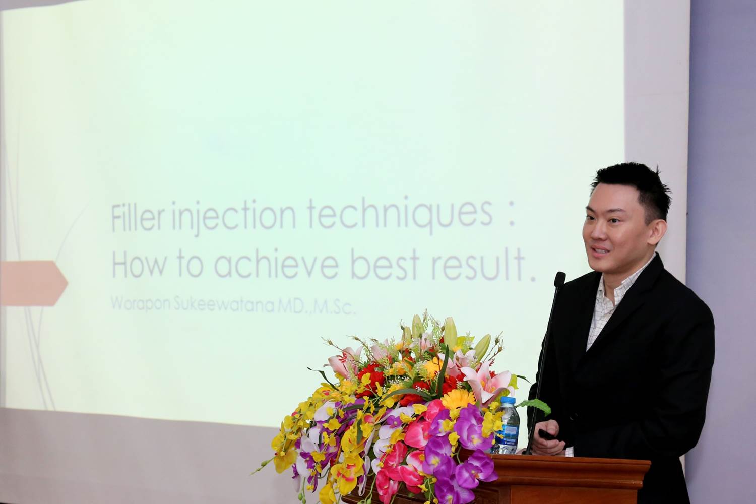 Bác sỹ Worapon Sukeewatana đang giới thiệu thực hành các vùng tiêm chất làm đầy