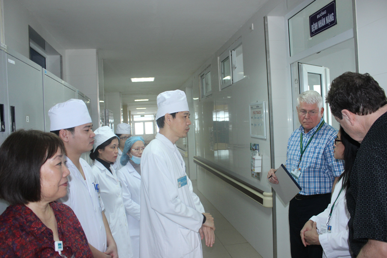 Đoàn chuyên gia trao đổi kinh nghiệm tại buồng bệnh