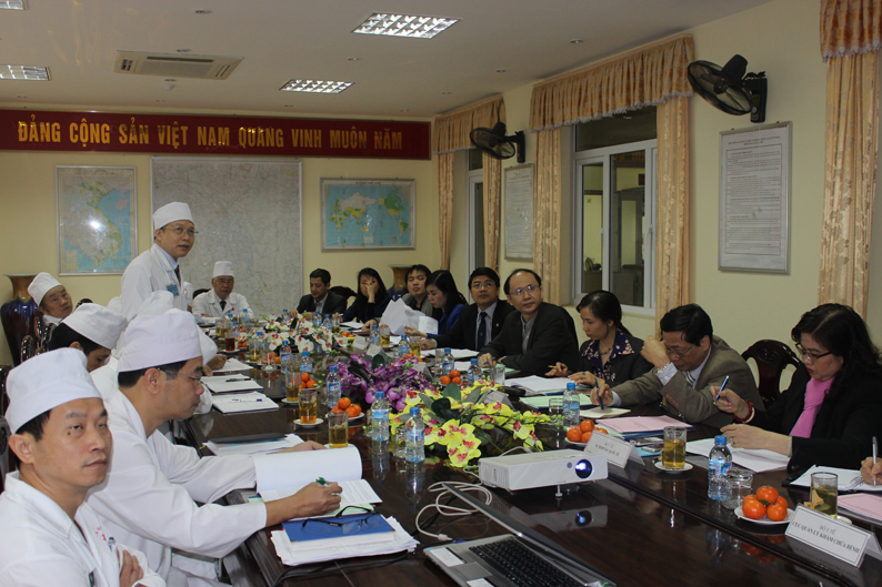 Tại buổi tiếp, Đoàn đã nghe báo cáo của Giám đốc Nguyễn Gia Tiến giới thiệu một số thành tich về đào tạo, ứng dụng công nghệ thông tin trong điều hành bệnh viện, một số thành tựu về điều trị, nghiên cứu khoa học trong những năm gần đây; đồng thời đưa ra định hướng về nghiên cứu khoa học, hợp tác khoa học quốc tế và các dự án nghiên cứu khoa học công nghệ cấp Nhà nước, cấp Bộ, cấp thành phố...trong năm 2014 và các năm tiếp theo. Cũng trong báo cáo, đồng chí đã đưa ra một số vướng mắc trong điều trị, đào tạo, nghiên cứu khoa học và hợp tác quốc tế đề xuất với Bộ Y tế tư vấn và giúp đỡ.