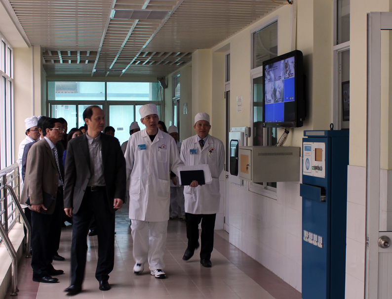 Ngay sau buổi làm việc, Thứ trưởng Lê Quang Cường cùng đoàn công tác đã thăm các khoa: Labo nuôi cấy tế bào, Khoa điều trị bỏng trẻ em, Khoa điều trị bỏng người lớn, Khoa liền vết thương, Khoa phẫu thuật tạo hình thẩm mỹ của Viện Bỏng.