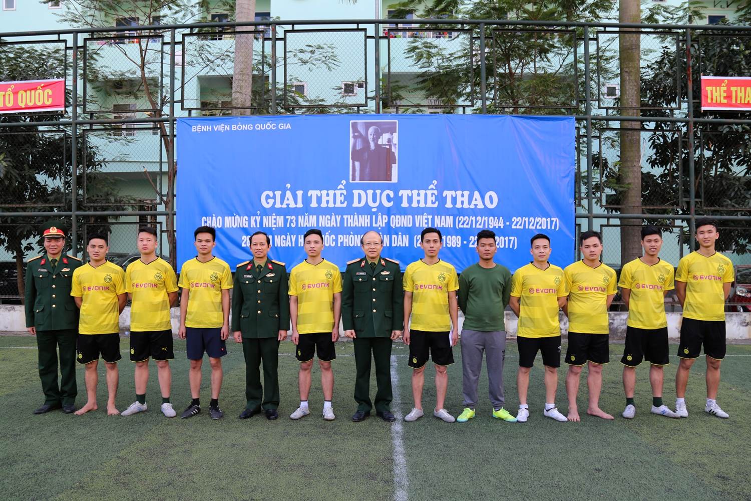 VBQG: Tiếp theo giải thể dục thể thao chào mừng kỷ niệm 73 năm ngày thành lập Quân đội nhân dân Việt Nam (22/12/1944 - 22/12/2017), 28 năm ngày Hội Quốc phòng toàn dân (22-12-1989/22-12-2017), chiều ngày 21/12/2017, tại sân vận động Viện Bỏng Quốc gia, trận Chung kết Giải bóng đá Viện Bỏng năm 2017 giữa hai đội Đội Khối cơ quan và đội khối cận lâm sàng đã được diễn ra trong không khí vô cùng náo nhiệt và đầy kịch tính.