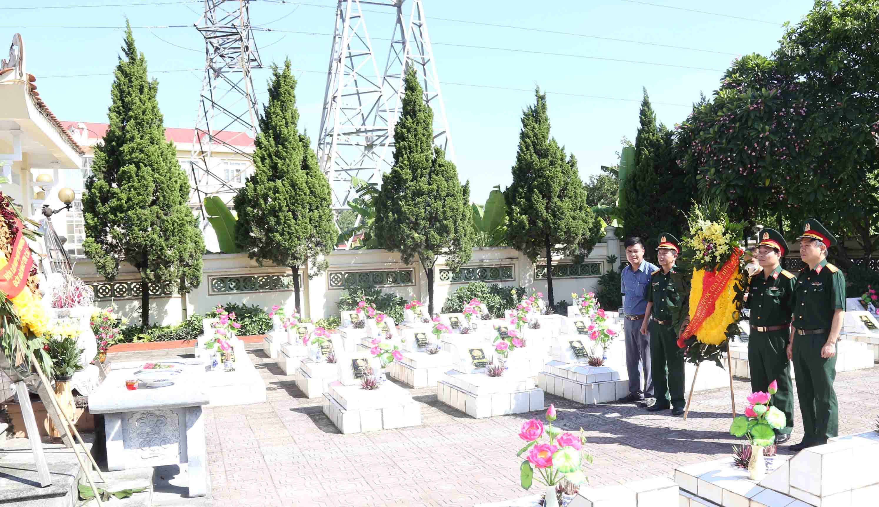 Tại Nghĩa trang liệt sĩ xã Hoàng Hoa trong không khí trang nghiêm, thành kính, đoàn công tác đã kính cẩn nghiêng mình đặt vòng hoa, dâng hương để tưởng nhớ công lao to lớn của các Anh hùng Liệt sỹ đã hy sinh, hiến dâng trọn tuổi thanh xuân và cuộc đời mình để bảo vệ sự toàn vẹn của Tổ quốc. Sự hi sinh của các anh hùng liệt sỹ đã làm nên những chiến công hào hùng, bất khuất tô thắm lá cờ đỏ sao vàng của Tổ Quốc, là niềm tự hào của dân tộc Việt Nam.