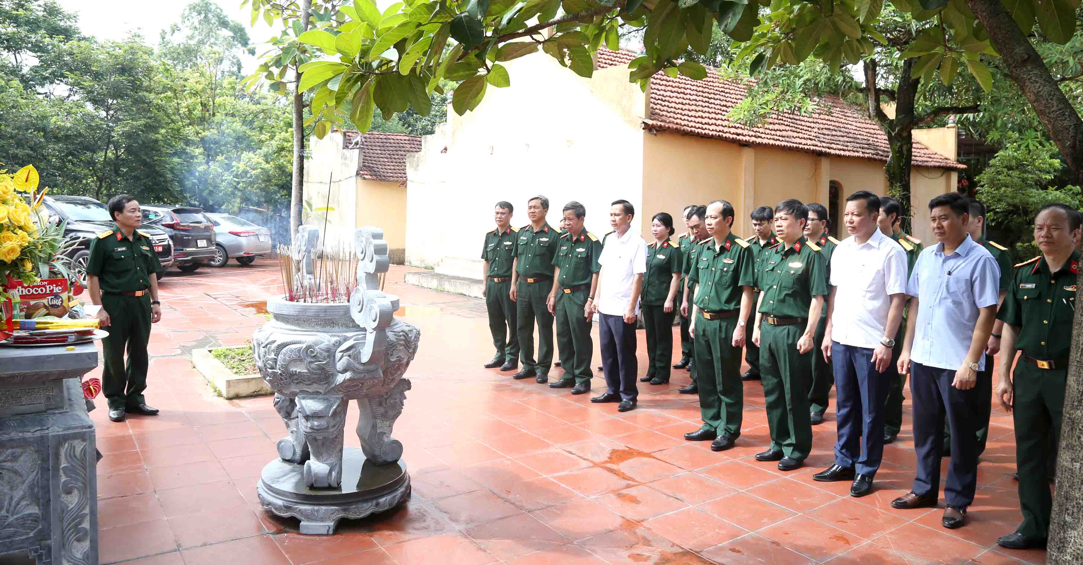 Đại tá, TS. Trương Ngọc Dương, Bí thư Đảng uỷ, Chính uỷ Bệnh viện cùng đoàn công tác và lãnh đạo xã Hoàng Hoa dâng hương, dâng hoa tại nhà bia lưu niệm của Học viện