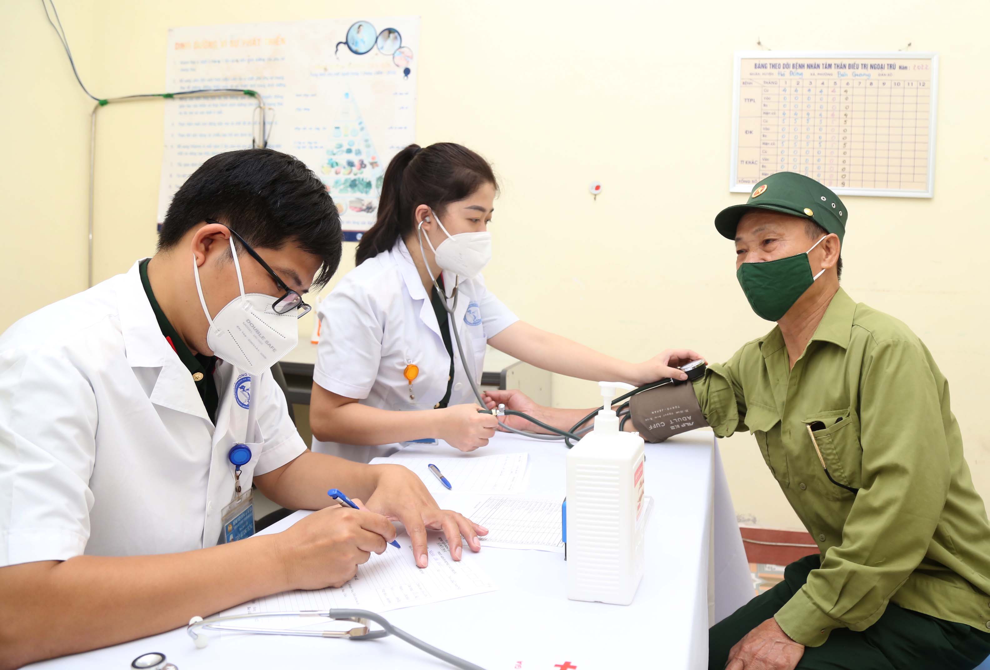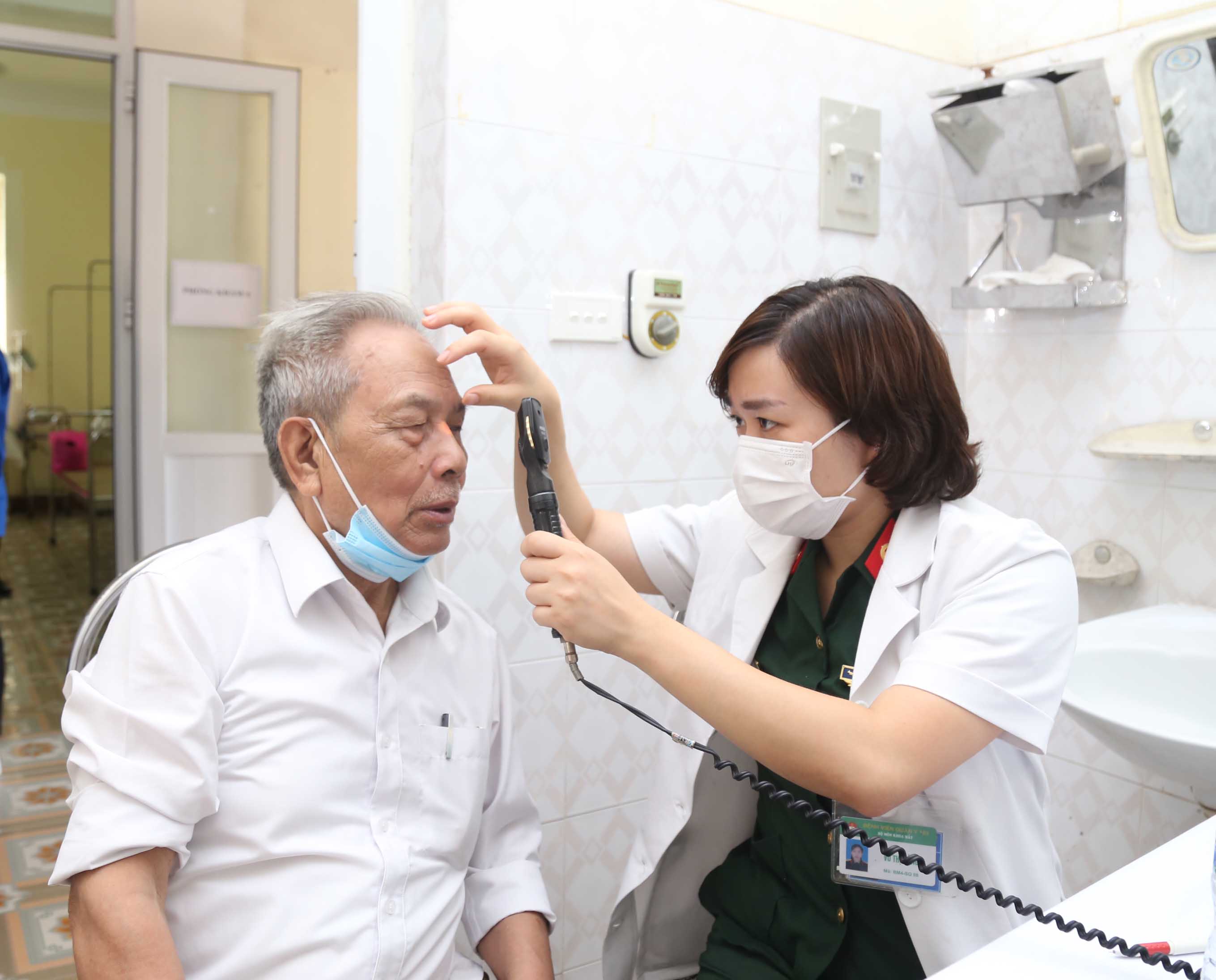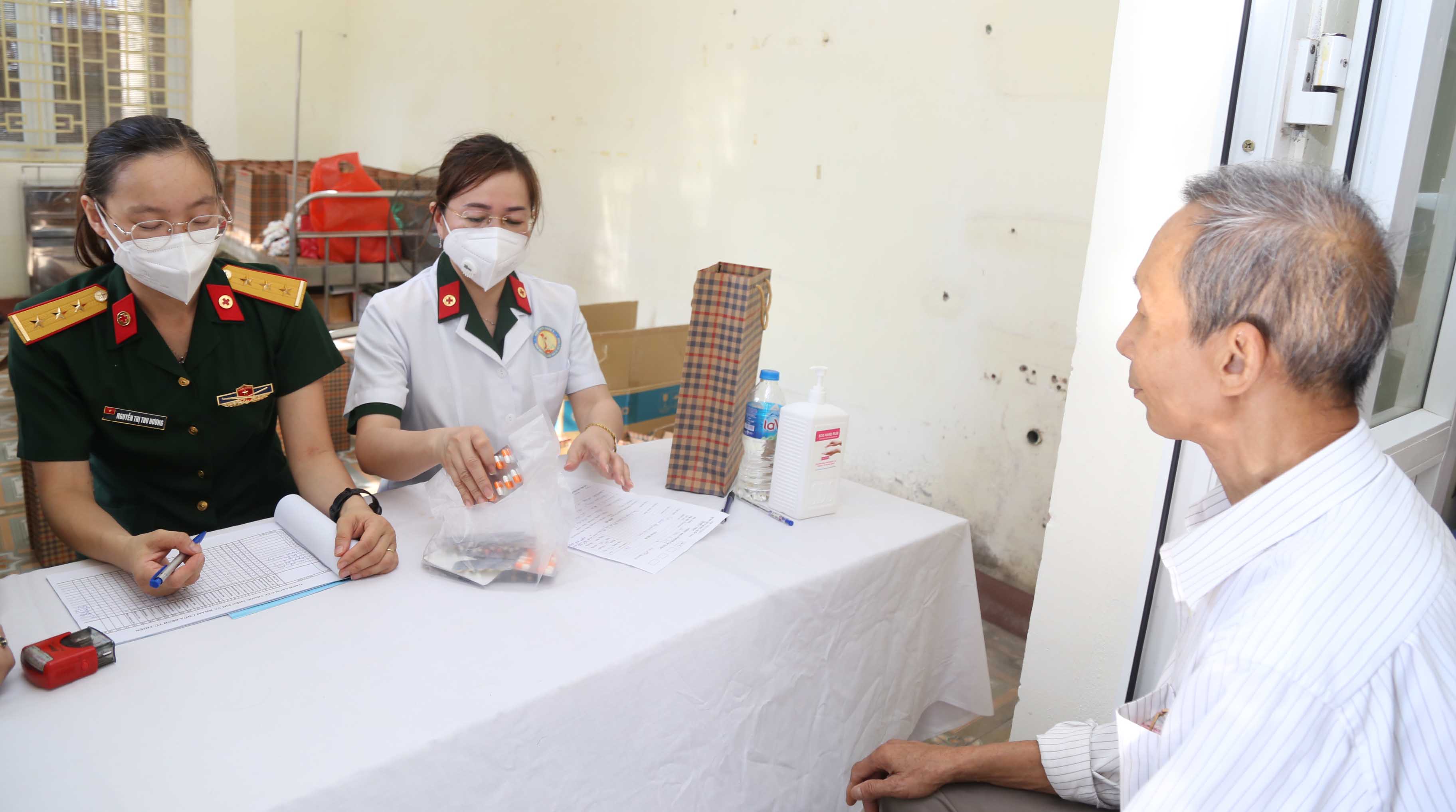Đại tá, PGS.TS. Vũ Quang Vinh, Phó Giám đốc Bệnh viện đến thăm, khám và tư vấn sức khoẻ cho cho các đối tượng chính sách