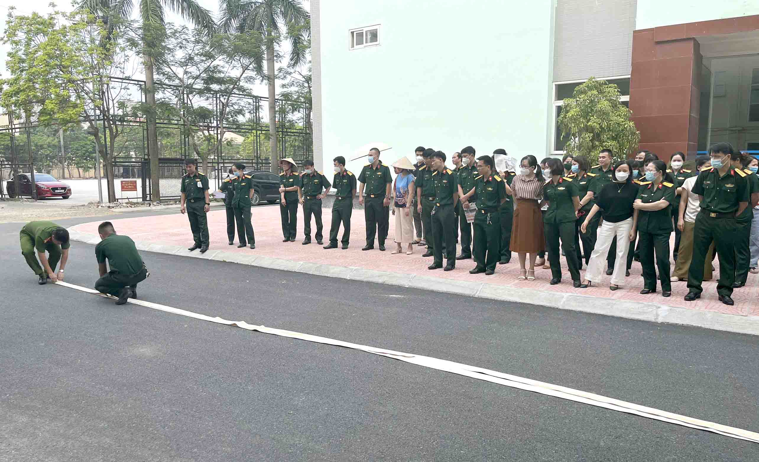 Sau buổi học lý thuyết, dưới sự giúp đỡ của giảng viên, toàn bộ lớp tập huấn đã tham gia diễn tập PCCC, thực hành cách sử dụng các phương tiện bình PCCC sẵn có, họng nước chữa cháy vách tường để dập tắt đám cháy và một số cách thức xử lý nhanh các tình huống có thể xảy ra.
