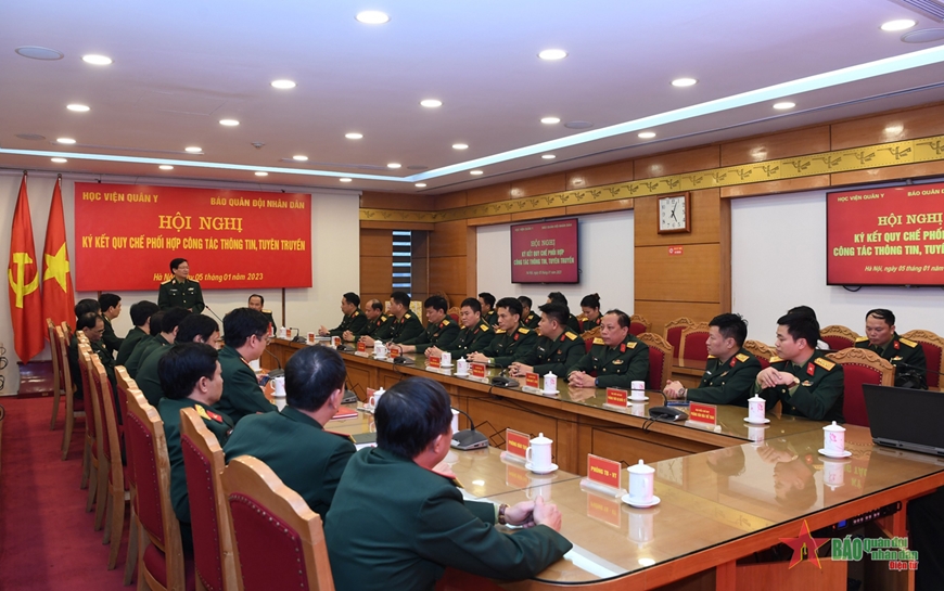Hội nghị ký kết quy chế phối hợp giữa hai đơn vị nhằm nâng cao hiệu quả phối hợp trao đổi thông tin, tuyên truyền kịp thời, chính xác giữa Học viện Quân y và Báo Quân đội nhân dân về nhiệm vụ đào tạo, nghiên cứu khoa học, khám, chữa bệnh và các hoạt động trong thực hiện nhiệm vụ chính trị của Học viện trên các ấn phẩm của Báo Quân đội nhân dân. Trong đó, tập trung biểu dương, tôn vinh, nhân rộng những tập thể, cá nhân điển hình tiên tiến trong các hoạt động, phong trào thi đua, cuộc vận động, góp phần khẳng định, tô thắm hình ảnh Bộ đội Cụ Hồ của Học viện Quân y trong giai đoạn mới.